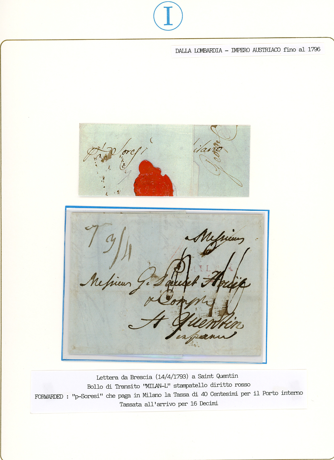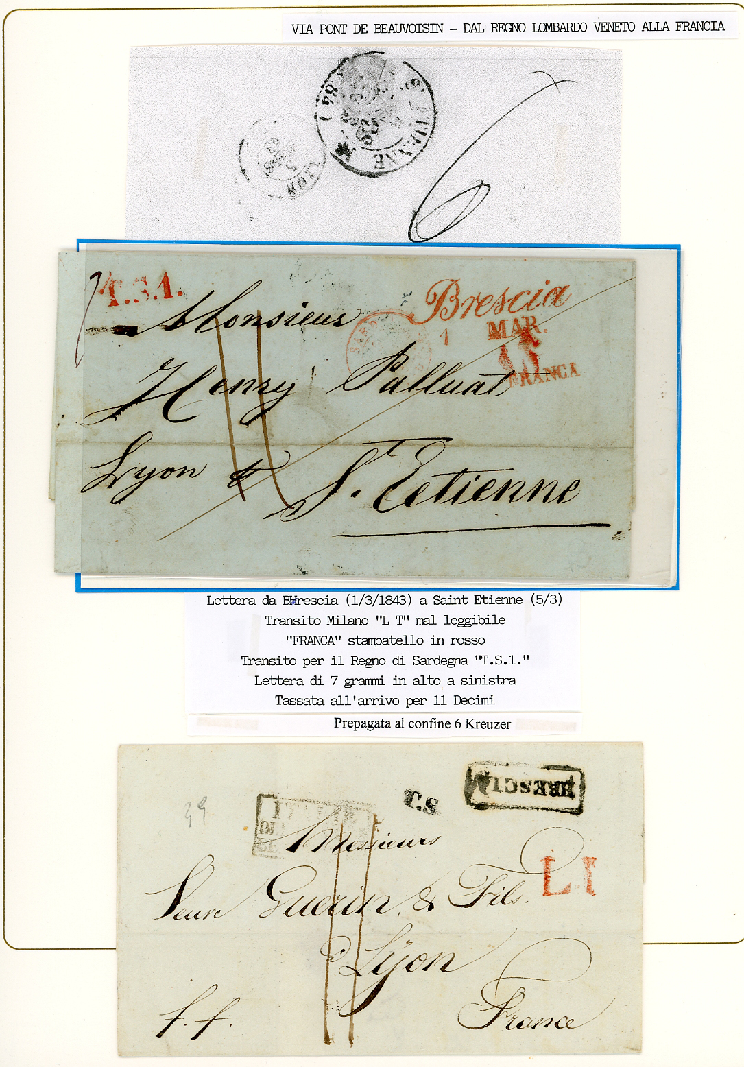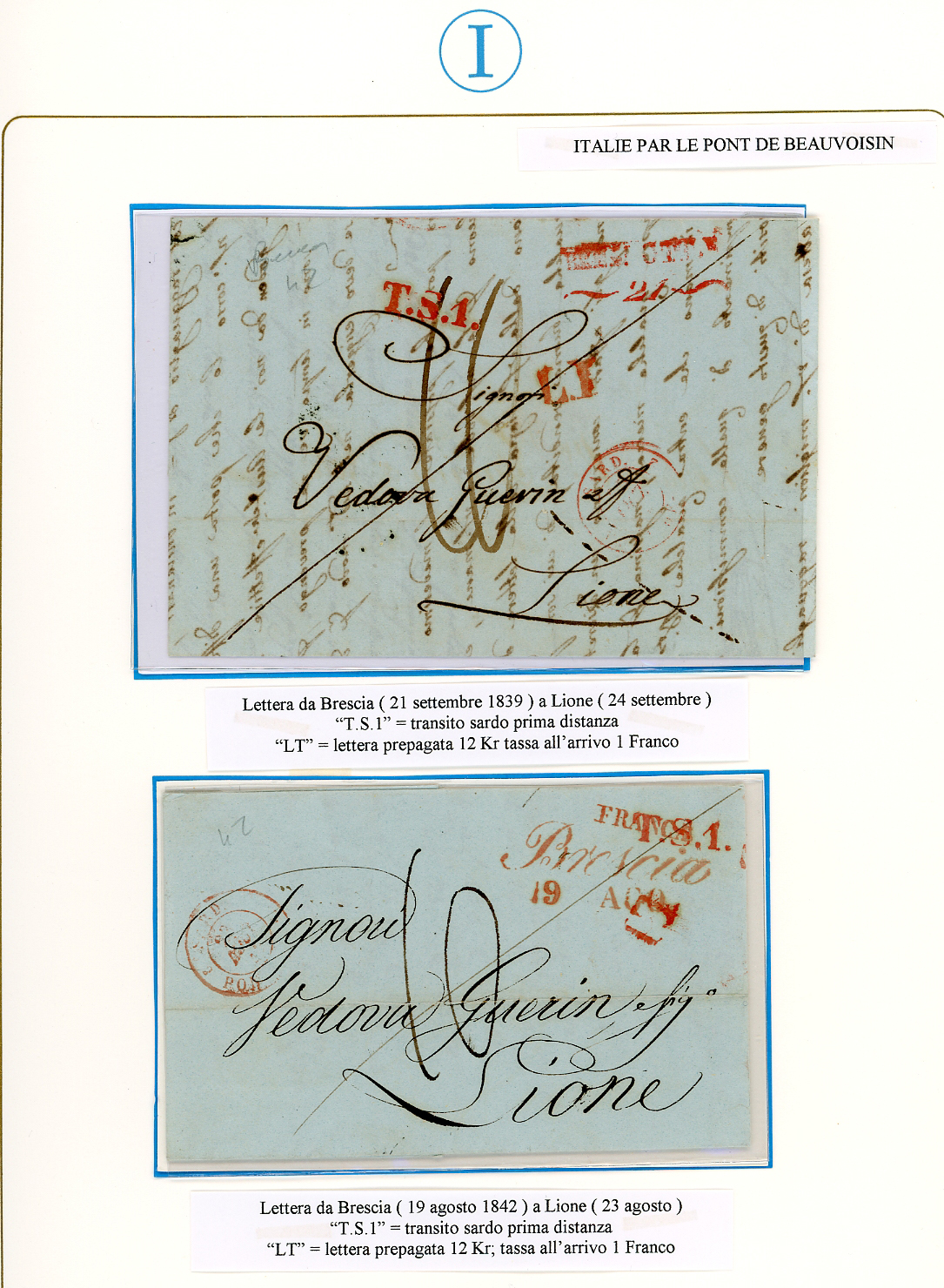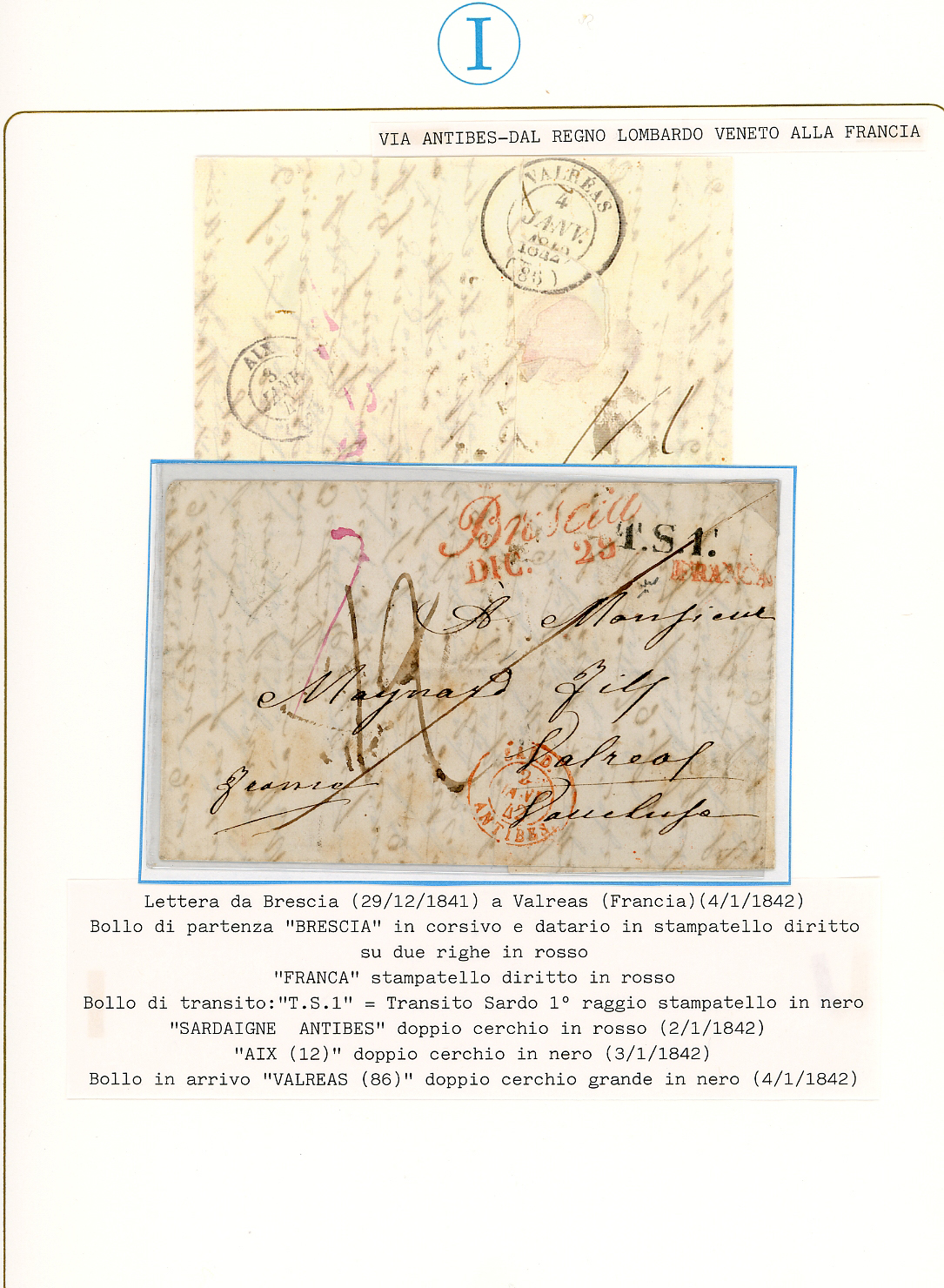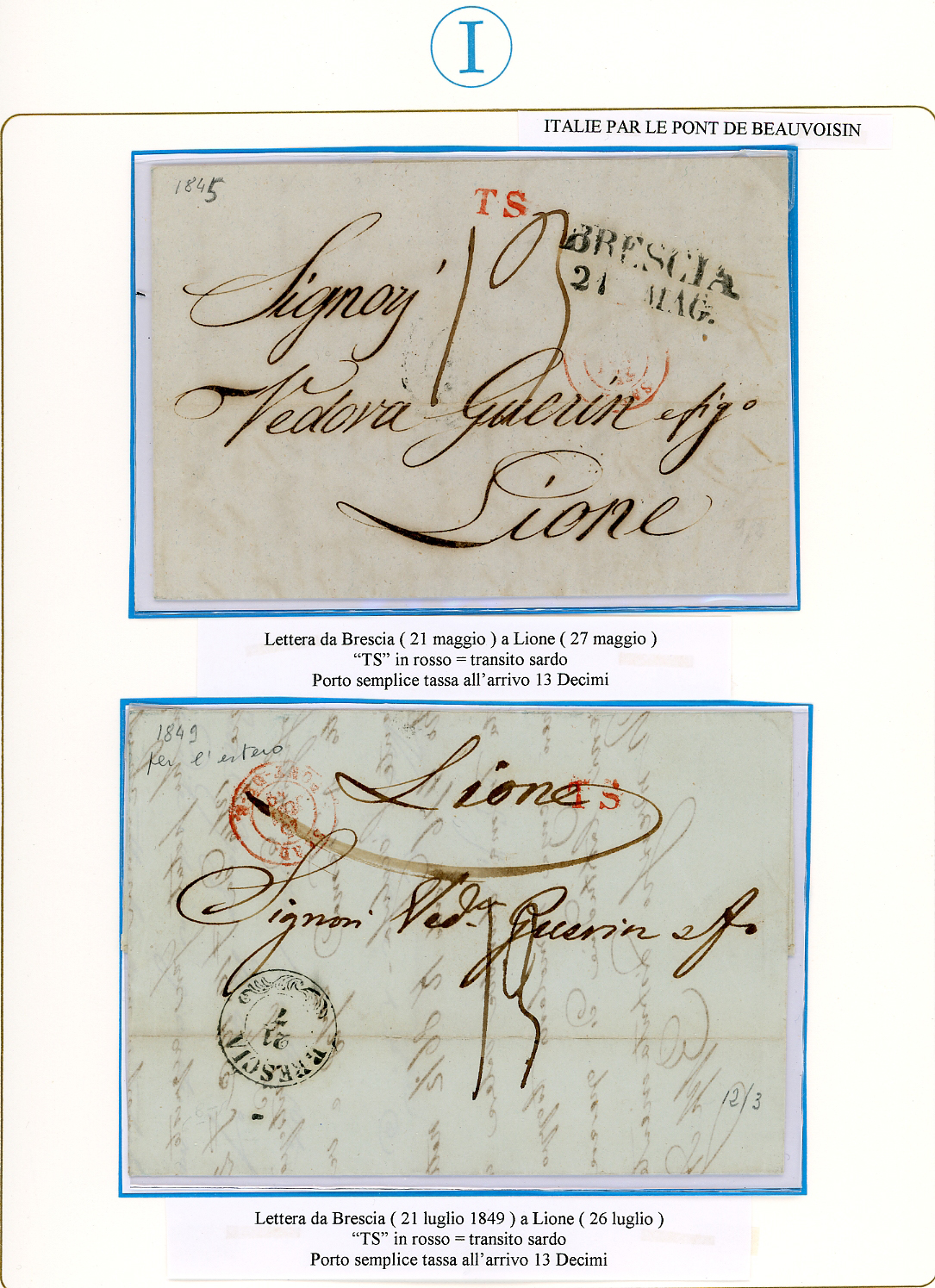 PREFILATELICHE LOMBARDO VENETO 1793/1849 - Bell'insieme di 9 lettere del periodo prefilateliche da Brescia alla Francia, con buona varietà di bolli e tassazioni. Tutte montate in fogli da esposizione con dettagliate descrizioni. Molto interessanti, provenienti dalla collezione Imperato.