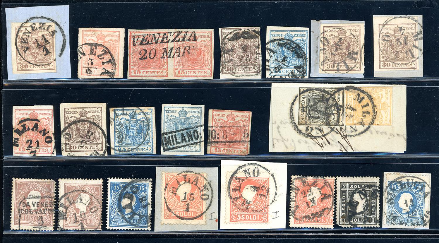 LOMBARDO VENETO 1850/1864 - Piccolo insieme di 36 esemplari usati su frammento. Qualità mista.