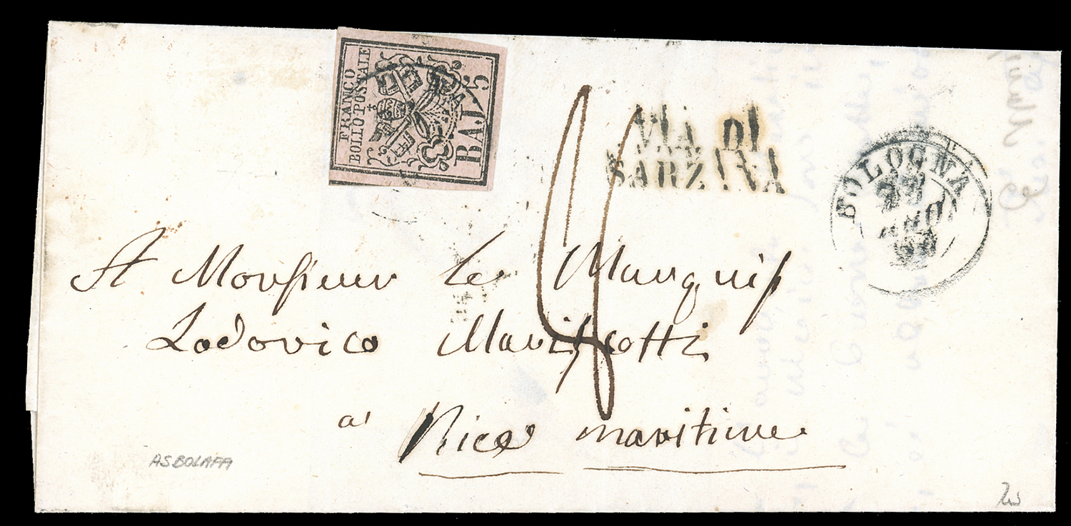 SARDEGNA CONTEA DI NIZZA 1853/1869 - Insieme di undici lettere: incoming mail, tutte dirette a Nizza, spedite: dal Lombardo Veneto, dal Regno di Napoli, da Parma, dallo Stato Pontificio, dalla Sardegna, dall'Austria e dall'Inghilterra e una forwarding da Nizza a Bari e qui affrancata con 2 gr di Napoli Regno. Insieme molto interessante e di ottima qualità.