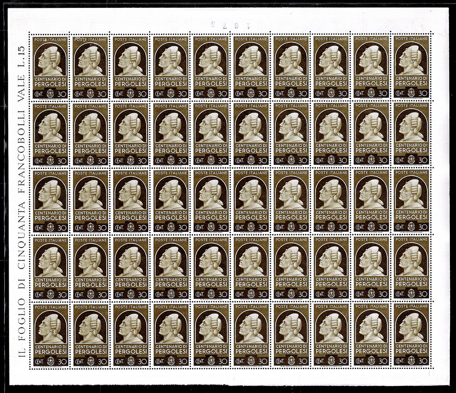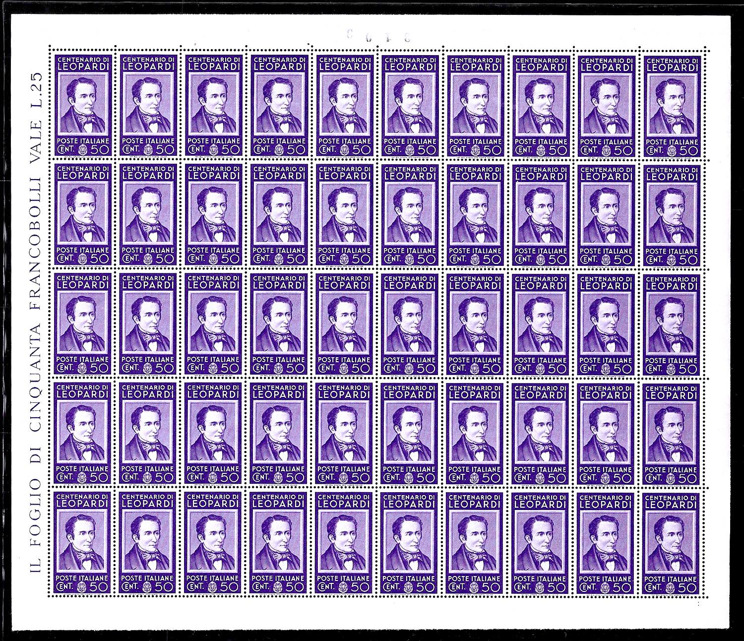 REGNO D'ITALIA 1937 - Illustri, serie completa in fogli da 50 esemplari (426/435), gomma originale integra, perfetti e di ottima qualità.