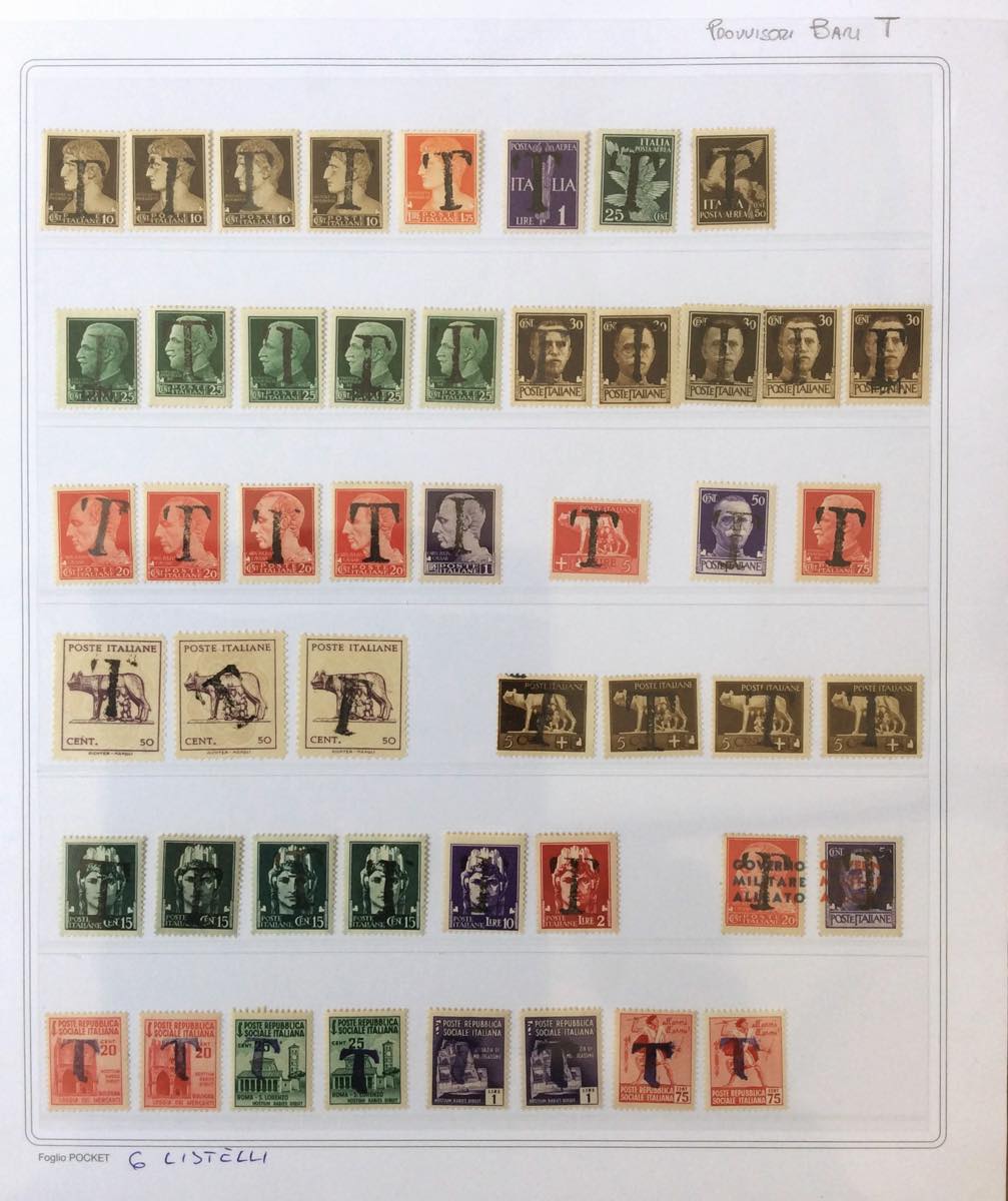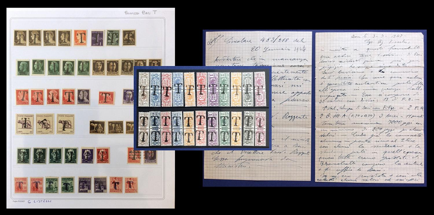 REGNO D'ITALIA/LUOGOTENENZA 1929/1945 - Interessante lotto di francobolli e servizi con soprastampa "T" di Bari. Per specialista e/o studioso.