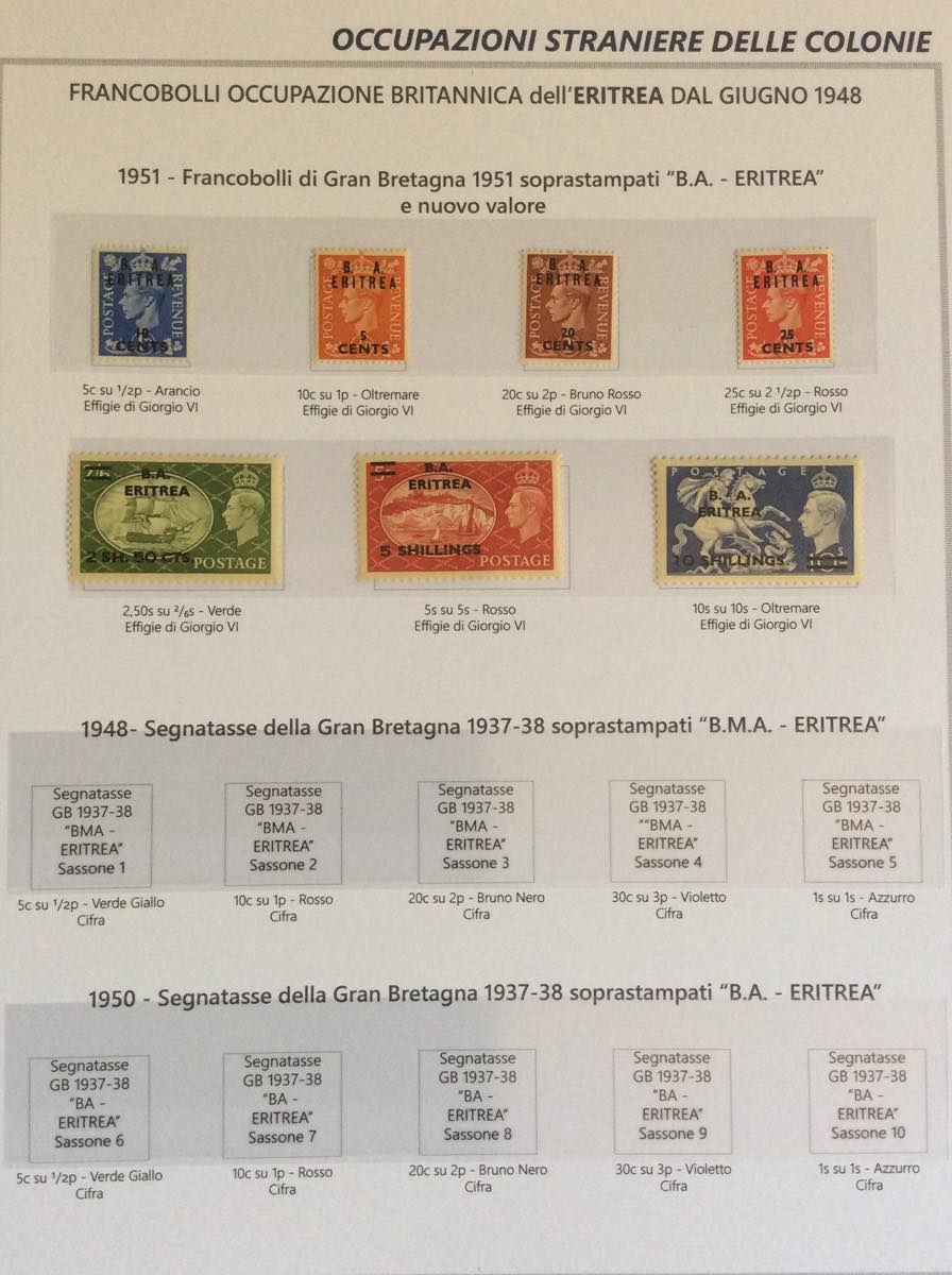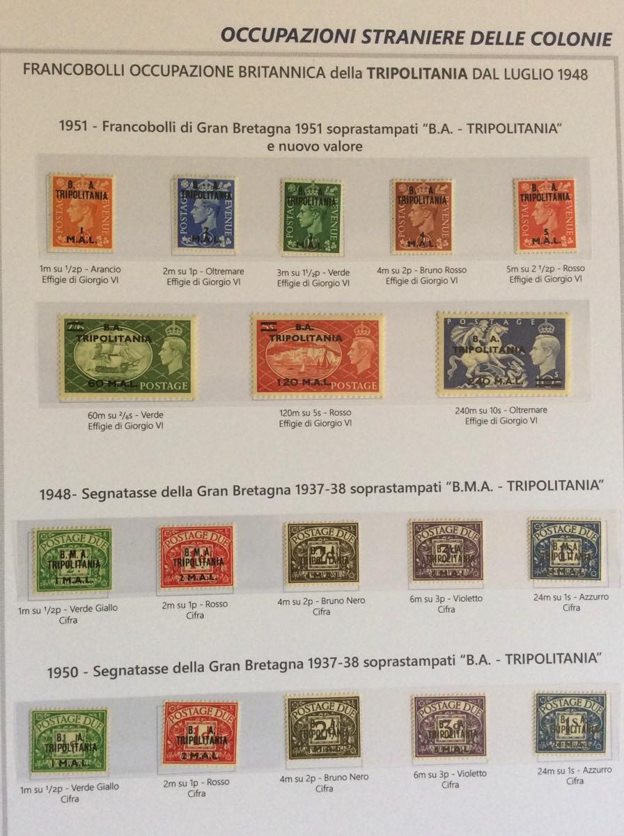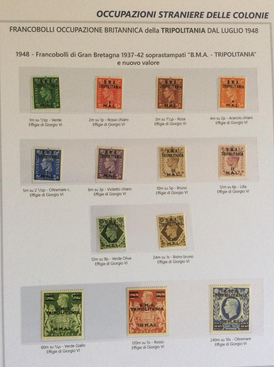 OCCUPAZIONE BRITANNICA FRANCESE EX COLONIE ITALIANE 1942/1951 - Bell'insieme di francobolli nuovi del periodo in un album Marini. Notate ... Leggi tutto