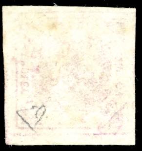 1858 - 2 grana violetto, falso per posta (F2b), perfetto e ben marginato, usato con il bollo "annullato" in cartella impresso in inchiostro ... Leggi tutto