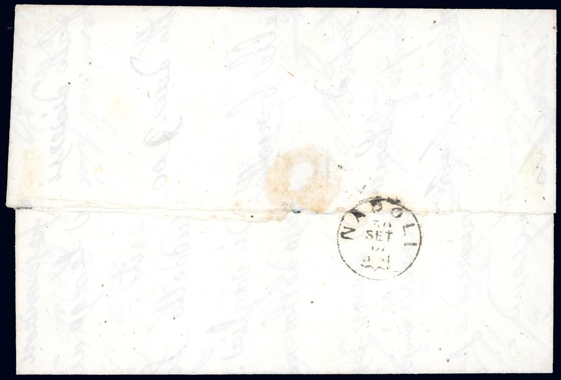 AGNONE, svolazzo + cerchio piccolo punti R2 - 1 grano (19), coppia, un esemplare leggermente intaccato in alto, su lettera del 27/9/1861 (datario invertito) per Napoli. Insieme unico. E.Diena, cert. Colla. Ex coll. Imperato.