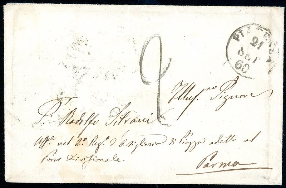 Lotto 455 - 1860 - Busta non affrancata da Piacenza 21/9/1860 a Parma, ...