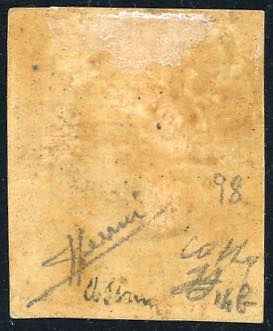 1859 - 50 grana lacca bruno scuro violaceo, pos. 98 (14b), piccolo bordo di foglio in basso, gomma originale, perfetto e ben marginato. ... Leggi tutto
