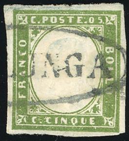 VALLELUNGA, ovale punti 13 - 5 cent. (Sardegna 13 Ca), ottimo stato, usato. Raro. A.Diena, Ferrario.