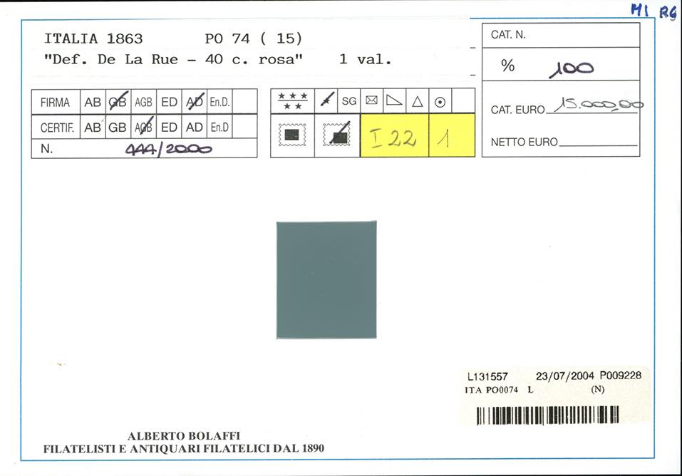 Lotto 744 - 1866 - 40 cent. De La Rue, tiratura di Torino (T20), nuovo, ...