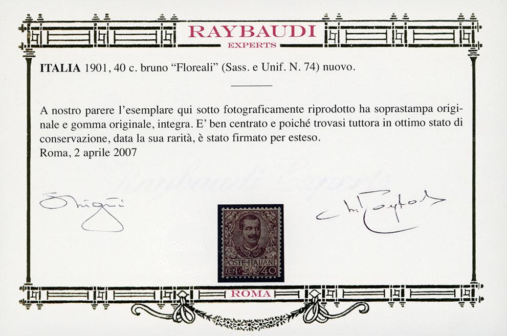 1901/26 - Floreale, tutti i valori emessi (68/78,91,150,200/203), ben centrati, gomma originale integra, perfetti e molto freschi. Ottima qualità. Cert. Oro Raybaudi per il 40 e il 50 cent. (cat.Sassone € 11.500/25.500).