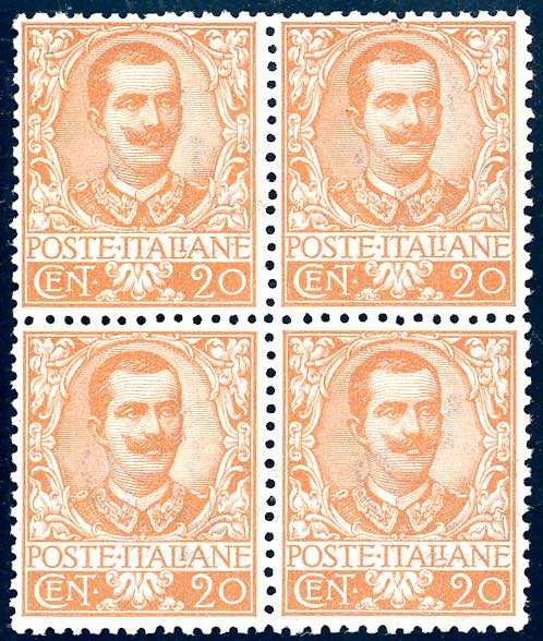 Lotto 820 - 1901 - 20 cent. Floreale (72), blocco di quattro nuovo, ...
