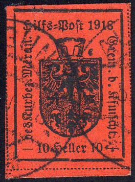 Lotto 1689 - MERANO 1918 - 10 h. rosso mattone, errore "Kfmscht" (8B), ...