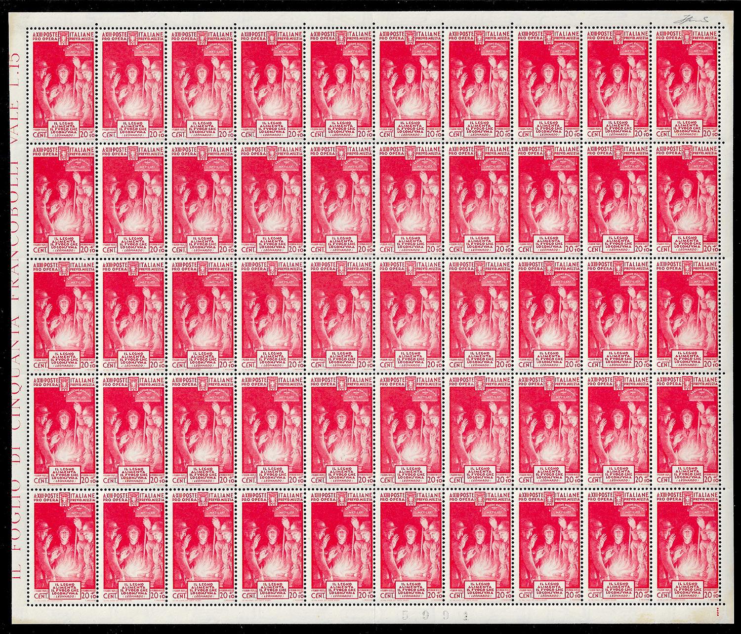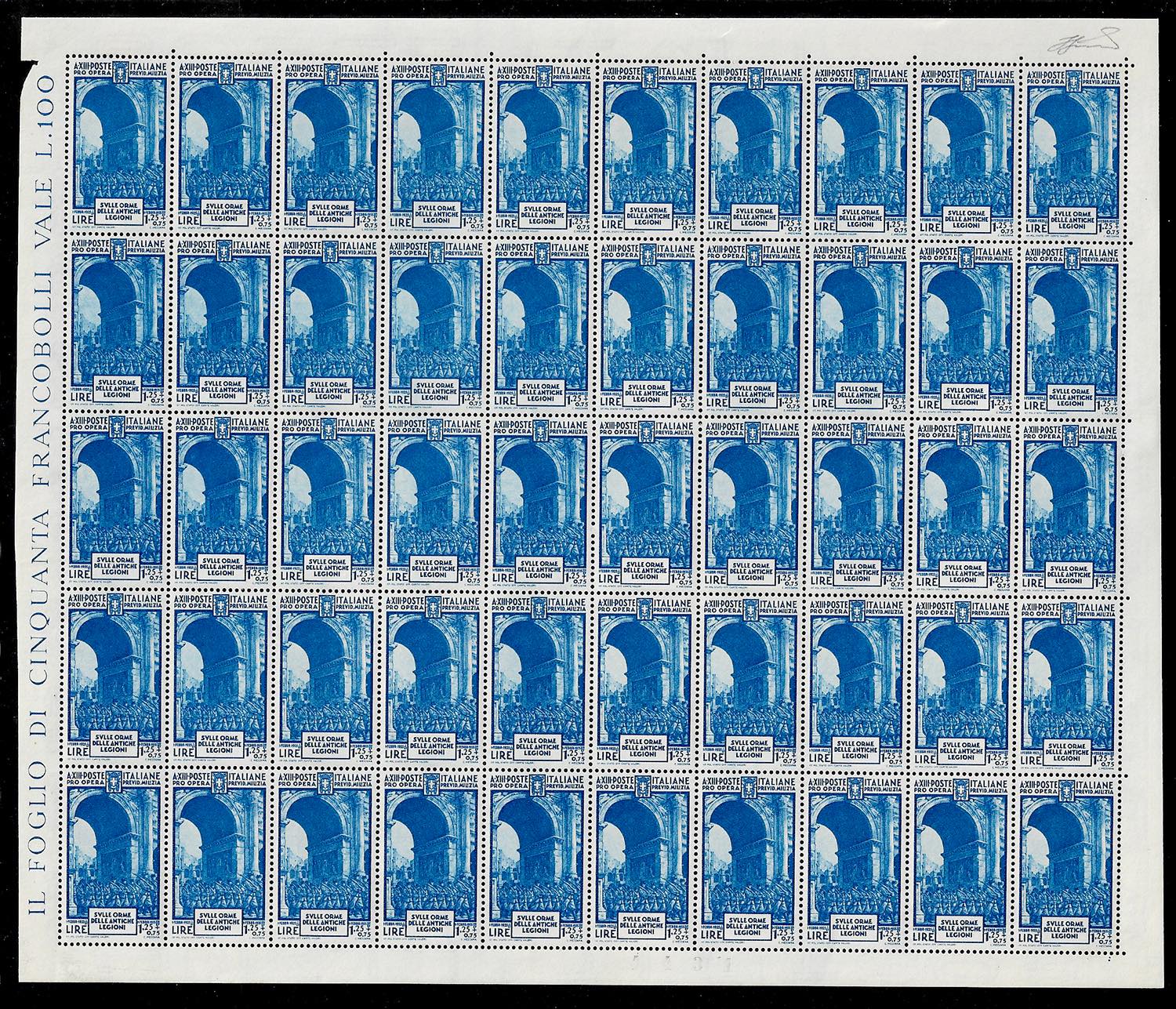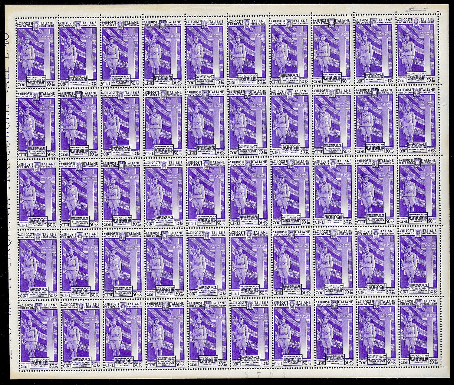 1935 - Milizia IV emissione, serie completa (380/383+A89), fogli nuovi di 50 esemplari, gomma originale integra, perfetti, ottima qualità. ... Leggi tutto