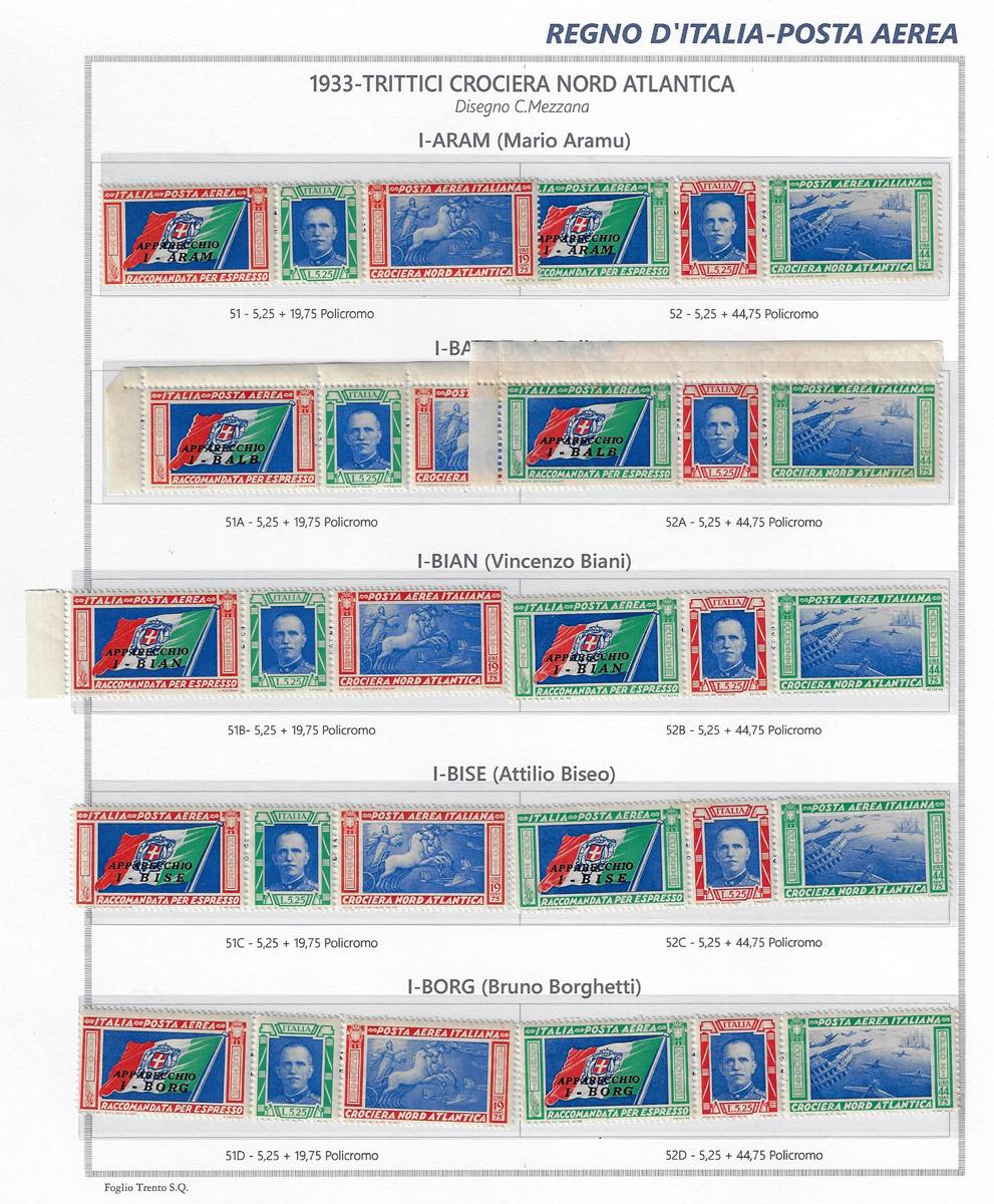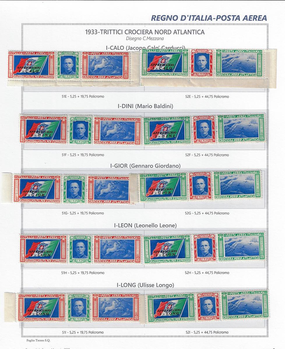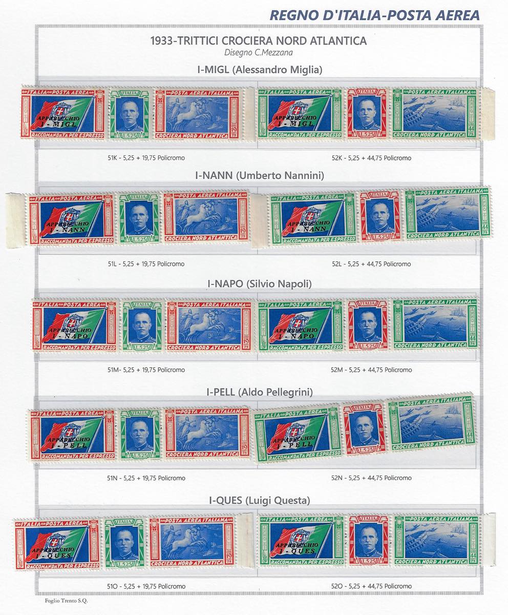 Lotto 989 - 1933 - Trittici, giro completo delle 20 sigle dei piloti ...
