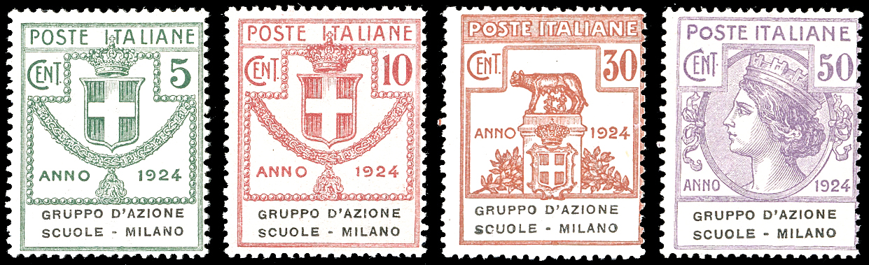 GRUPPO D'AZIONE SCUOLE-MILANO 1924 - Serie completa (38/41), gomma originale integra, perfetti, freschi. Ferrario.