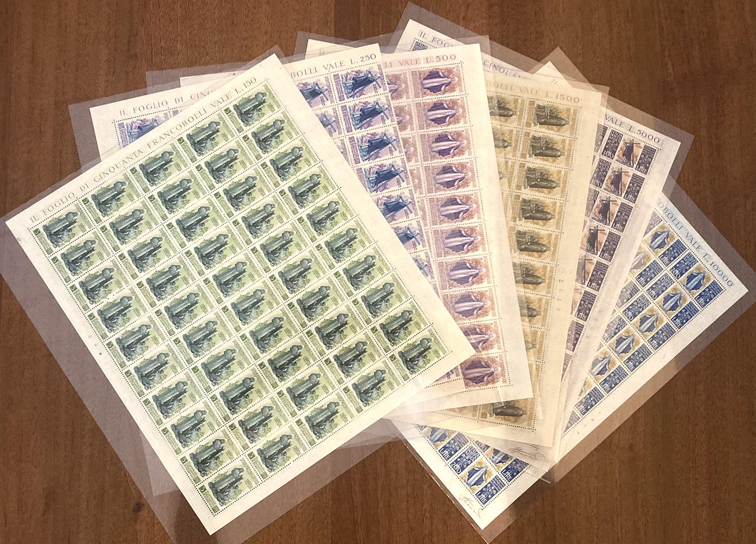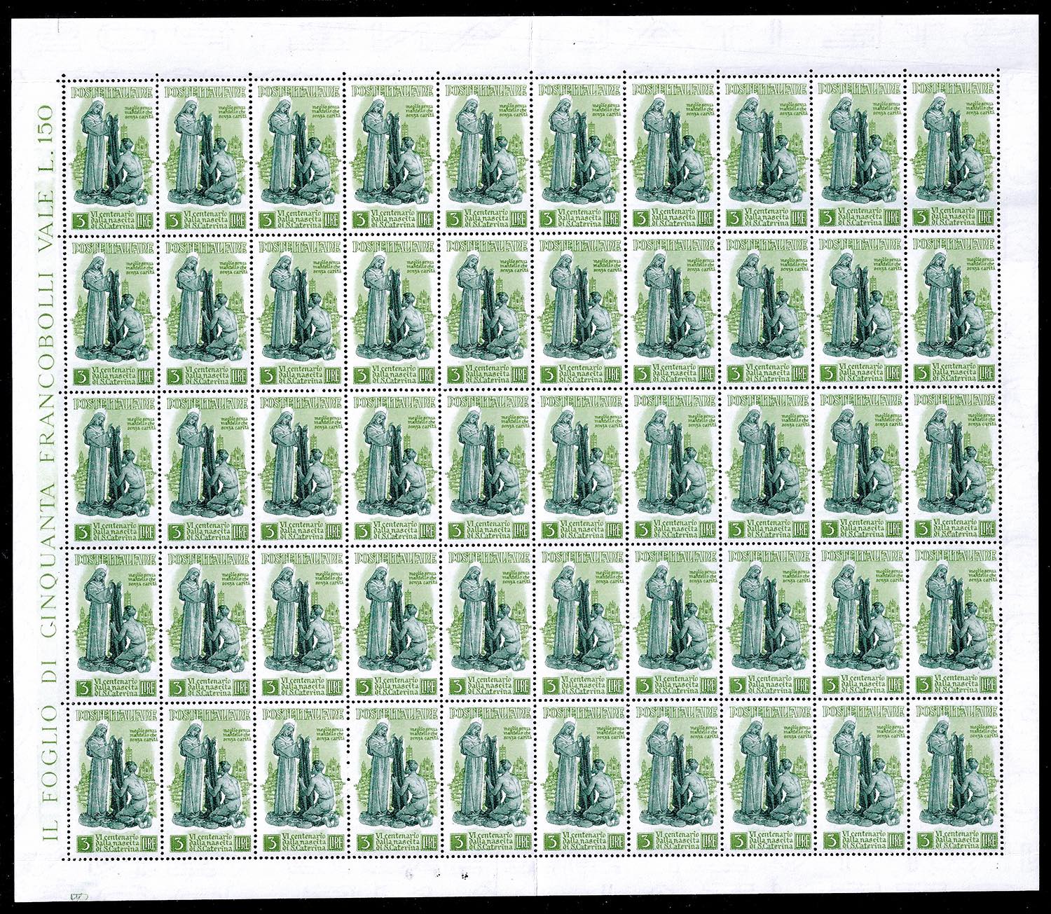1948 - Santa Caterina, serie completa (574/577+A), fogli nuovi di 50 esemplari, gomma originale integra, perfetti e ben centrati. Il basso valore da 5 lire privo del margine superiore. Bellissimi e rari. Alti valori Ferrario.