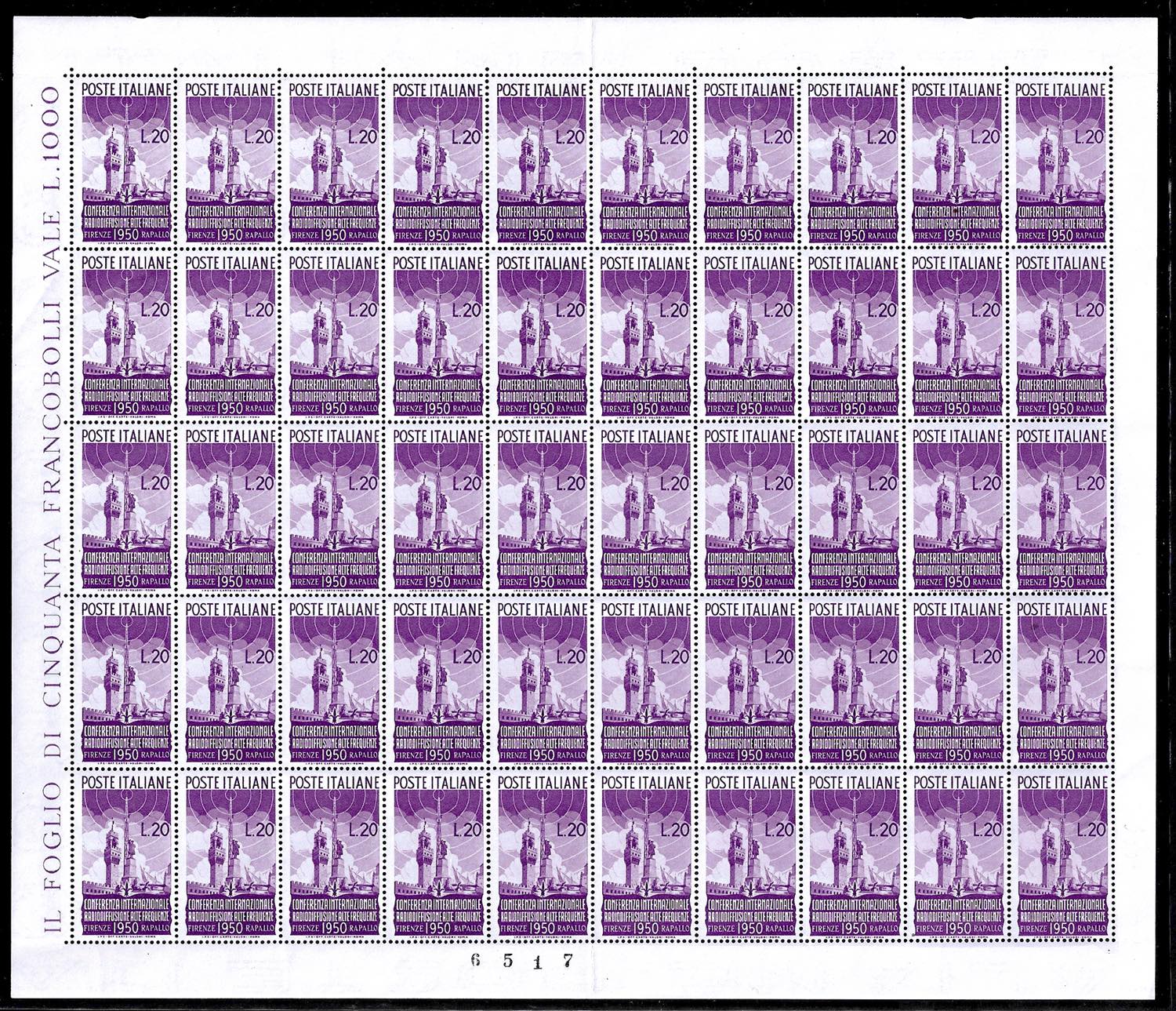 1950 - Radiodiffusione, serie completa (623/624), fogli nuovi di 50 esemplari, gomma originale integra, perfetti. Il 55 lire ottimamente ... Leggi tutto