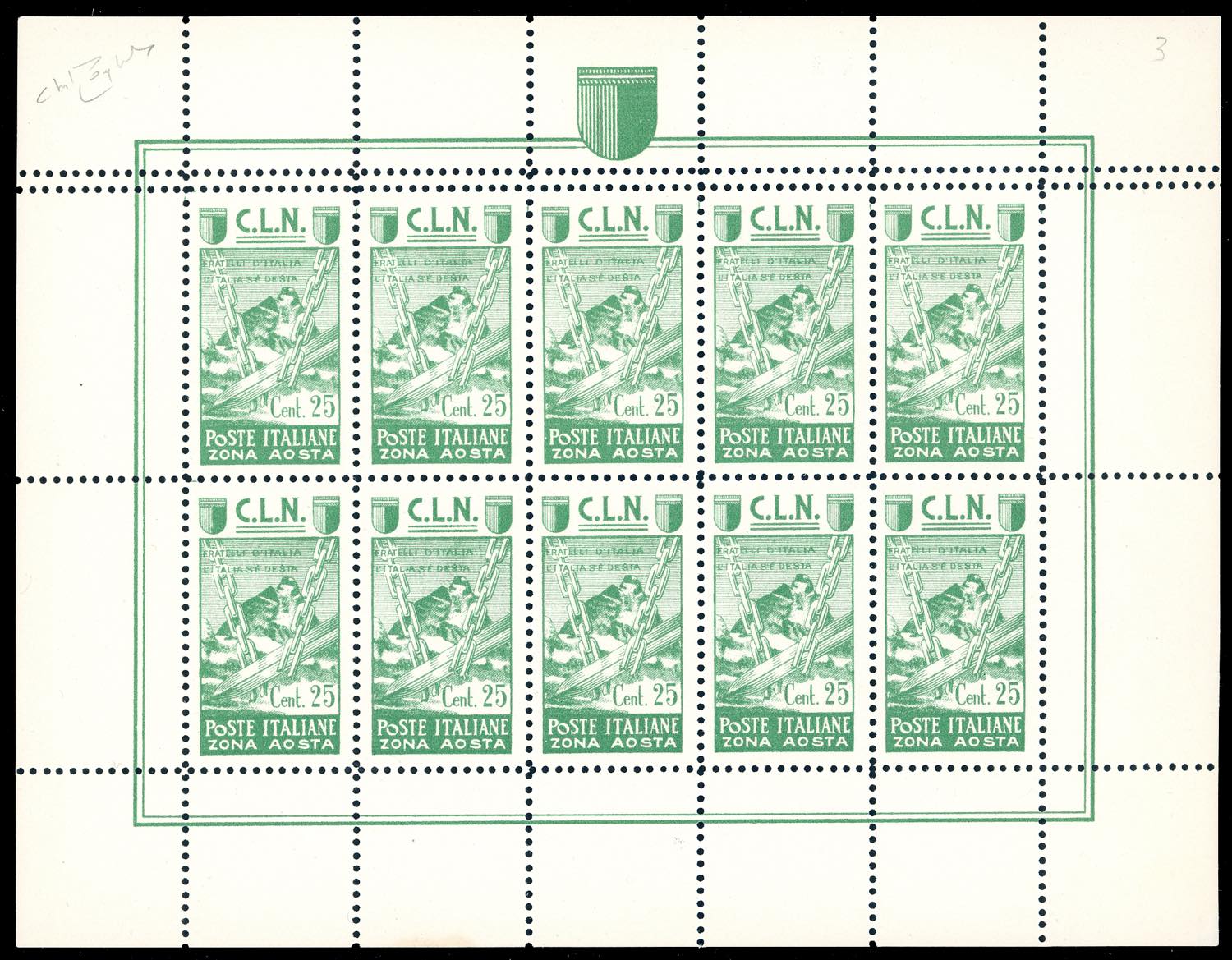 Lotto 1602 - AOSTA MINIFOGLI 1944 - 25 cent., minifoglio, doppia ...