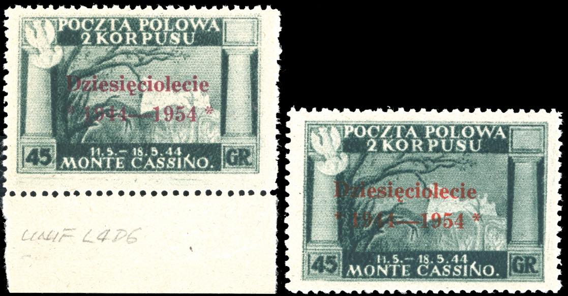 GOVERNO DI LONDRA 1954 - 45 g., un esemplare con soprastampa carminio, bordo di foglio, e uno con soprastampa vermiglio (4,7), gomma originale integra, perfetti. Caffaz il primo, cert. Caffaz il secondo.