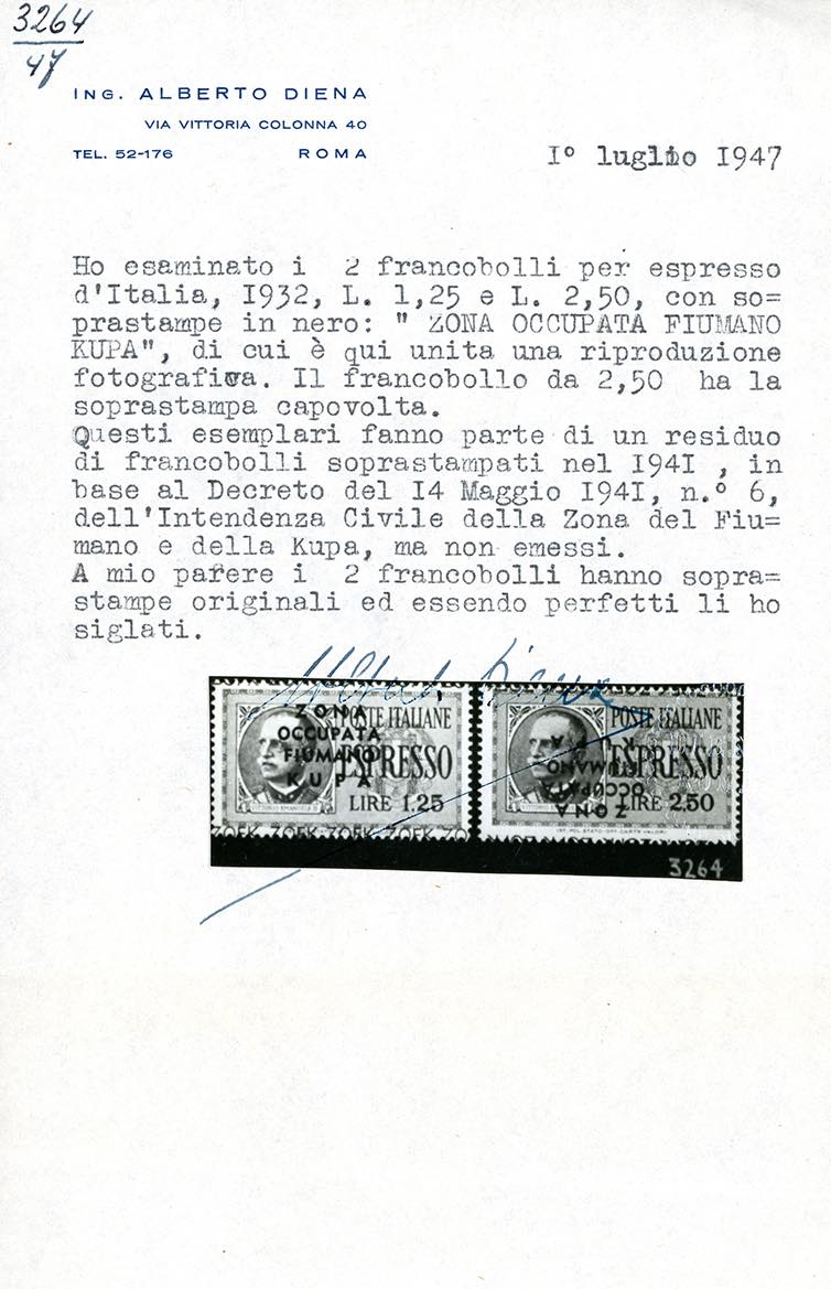 Lotto 1822 - ZONA FIUMANO KUPA 1941 - Asse ed Espressi soprastampati, ...