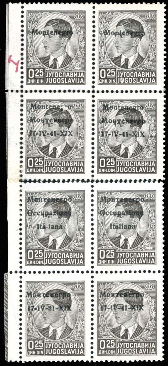 Lotto 1824 - MONTENEGRO 1941 - 25 p. blocco verticale di otto con le ...