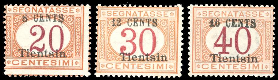 TIENTSIN SEGNATASSE 1918 - Soprastampati con nuovo valore, serietta (6/8), gomma originale, perfetti.