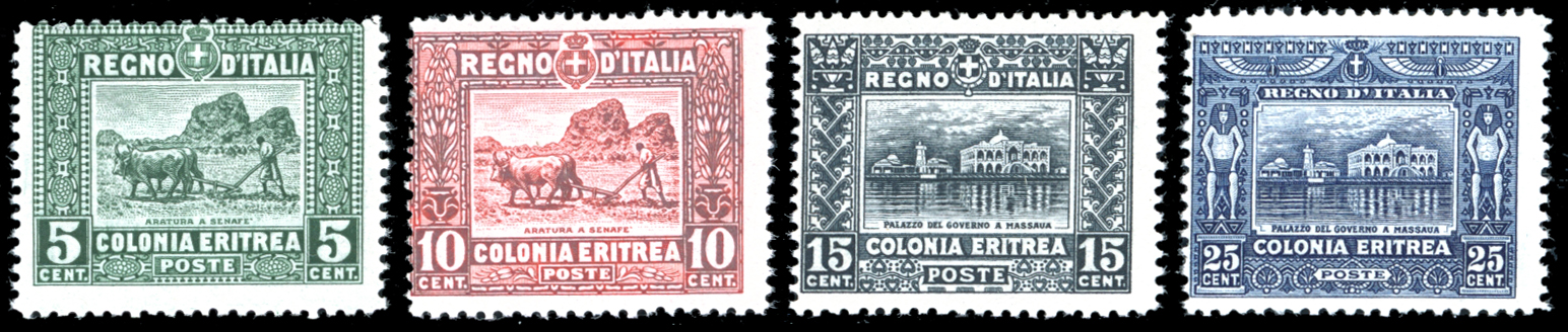 1910/14 - Soggetti africani, serie completa dent. 13 1/4 (34/37), nuovi, gomma originale integra, perfetti. Ferrario.