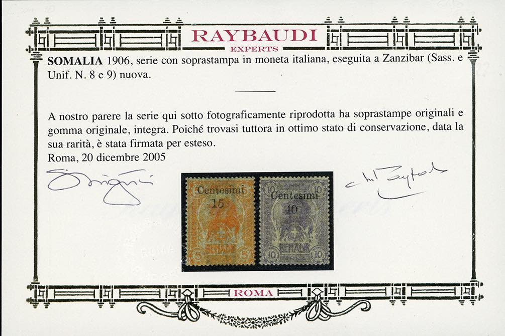 1905 - Soprastampati di Zanzibar, serie completa (8/9), gomma originale integra, perfetti e molto freschi. Rari e di ottima qualità. Cert. Oro Raybaudi.