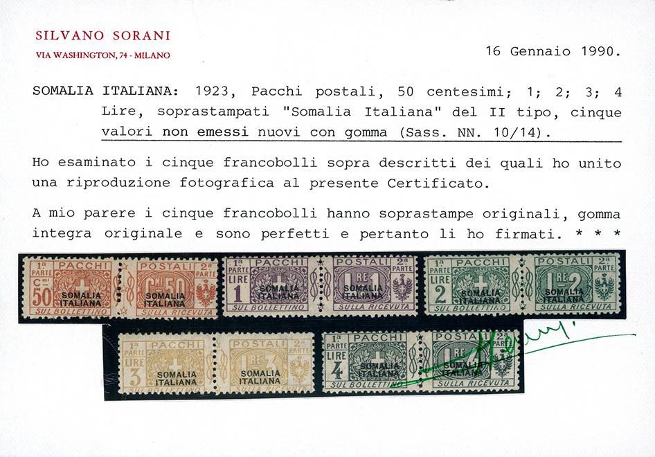 PACCHI POSTALI 1923 - Non emessi, soprastampa di tipo diverso, serie completa (10/14), gomma originale integra, perfetti. Ottima qualità. Cert. Sorani.