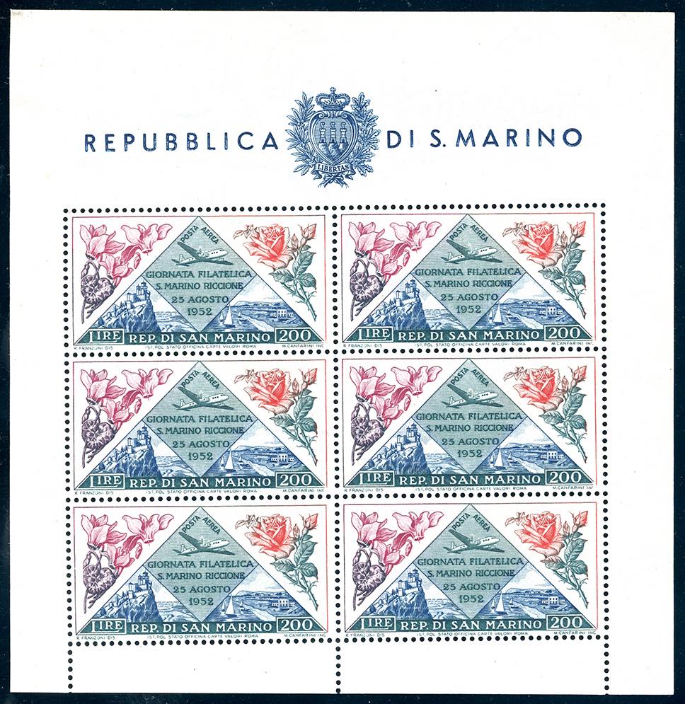 Lotto 2309 - 1952 - 200 lire Giornata Filatelica-Fiori, foglietto (14), ...