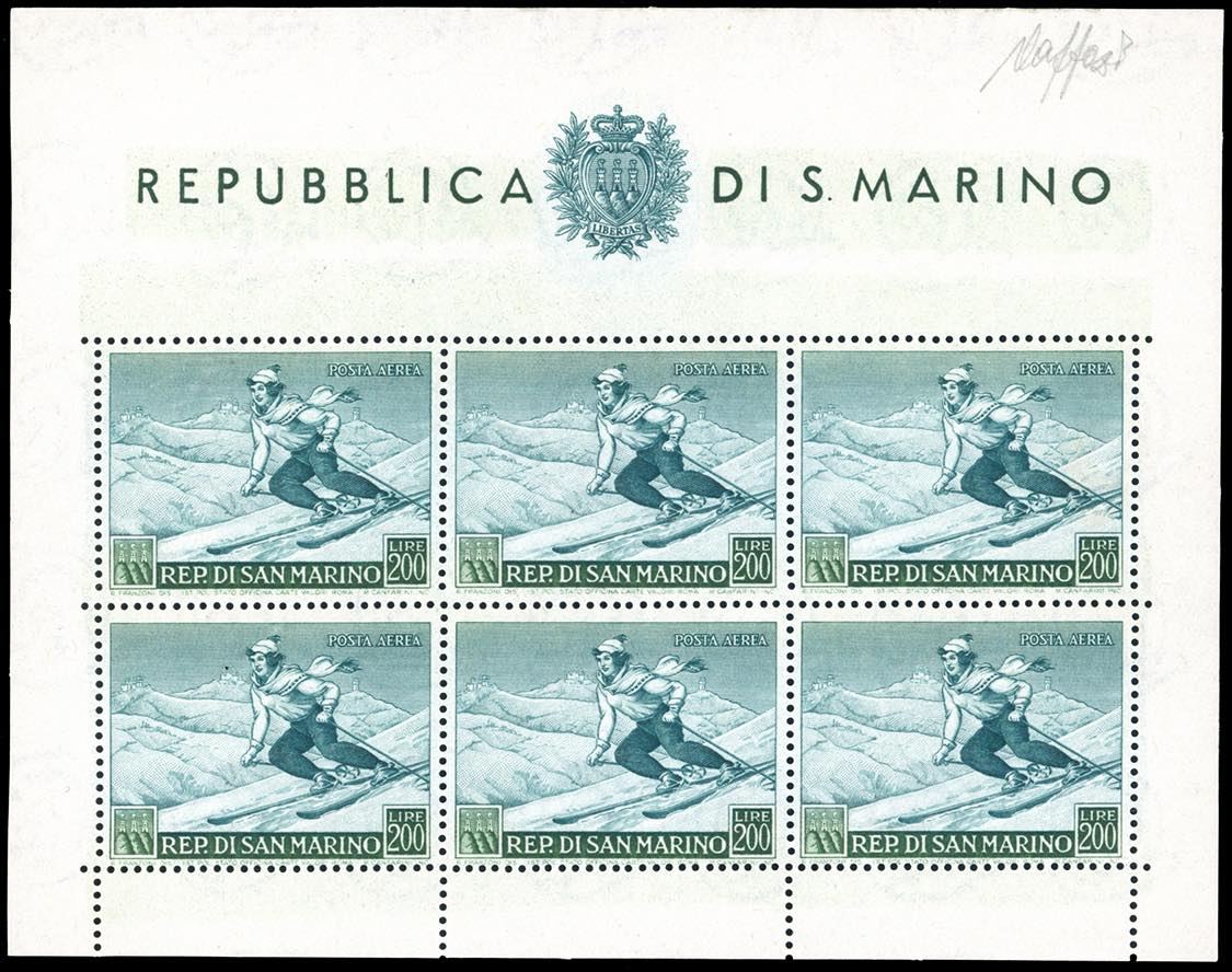 Lotto 2311 - 1953 - Sciatrice, foglietto (15), gomma originale integra, ...
