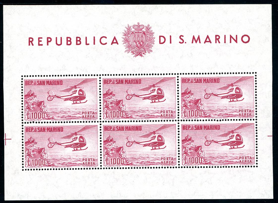 1961 - 1.000 lire Elicottero, foglietto (22), gomma originale integra, perfetto. Ferrario.