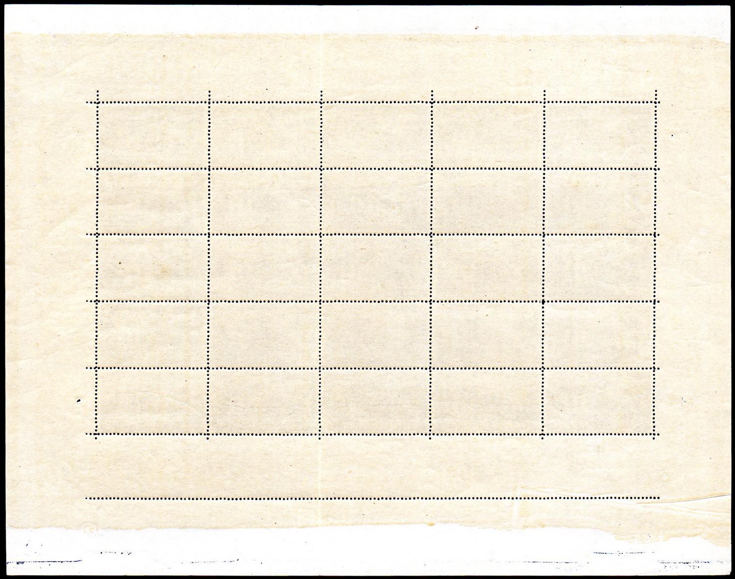 1946 - 30 lire (15), foglio completo di 25 esemplari, dentellatura orizzontale ripetuta sul bordo, non catalogata, gomma originale integra, perfetto. Rarissimo e non catalogato.