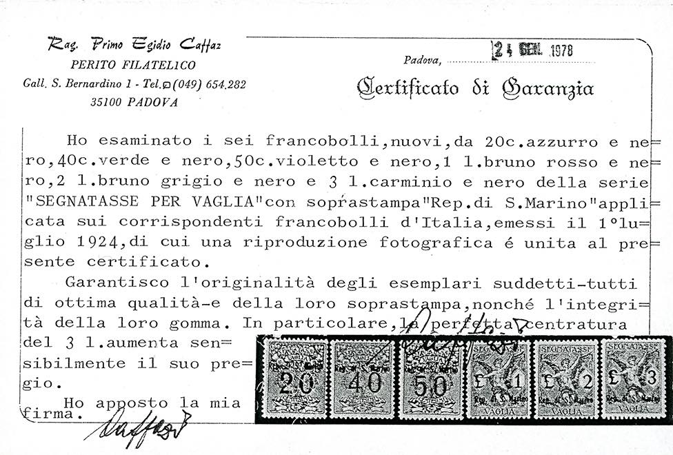 1924 - Soprastampati, serietta di 5 valori (1/5), nuovi, gomma originale integra, perfetti, buona/ottima centratura. G.Oliva, A.Diena, fotocopia cert. Caffaz della serie completa. (Cat.Sassone € 3.250/6.500).