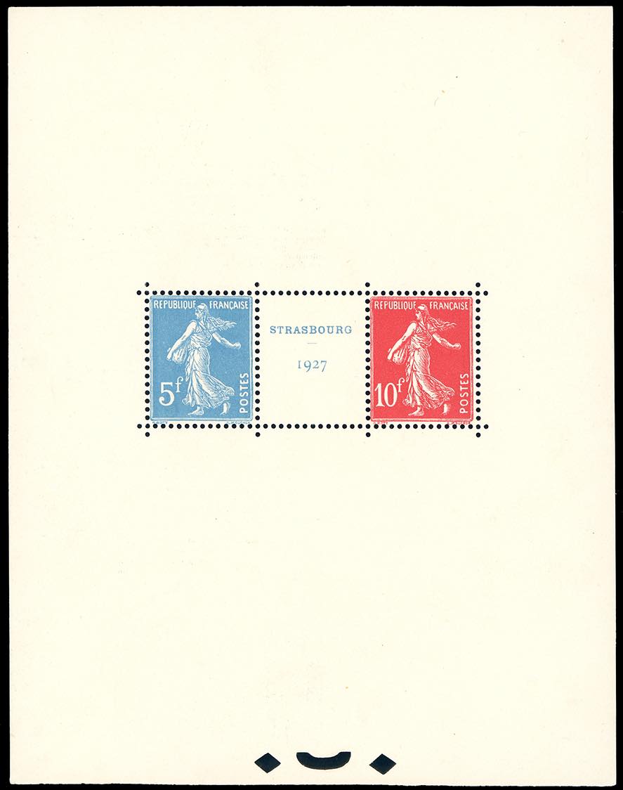 FRANCIA FOGLIETTI 1927 - Esposizione filatelica di Straburgo, foglietto (BF2), gomma originale integra, perfetto.
