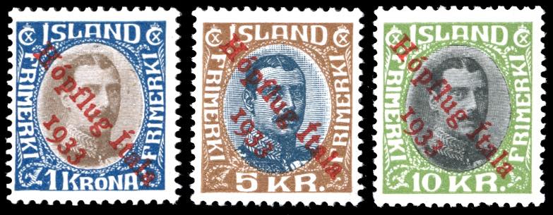 ISLANDA POSTA AEREA 1933 - Soprastampati Crociera Nord Atlantica di Balbo, serie completa (A12/A14), nuovi, gomma originale integra, ... Leggi tutto