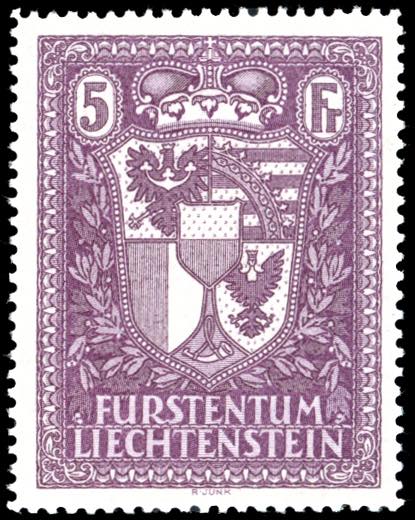 Lotto 2422 - LIECHTENSTEIN 1935 - 5 f. lilla Stemma (128), gomma ...