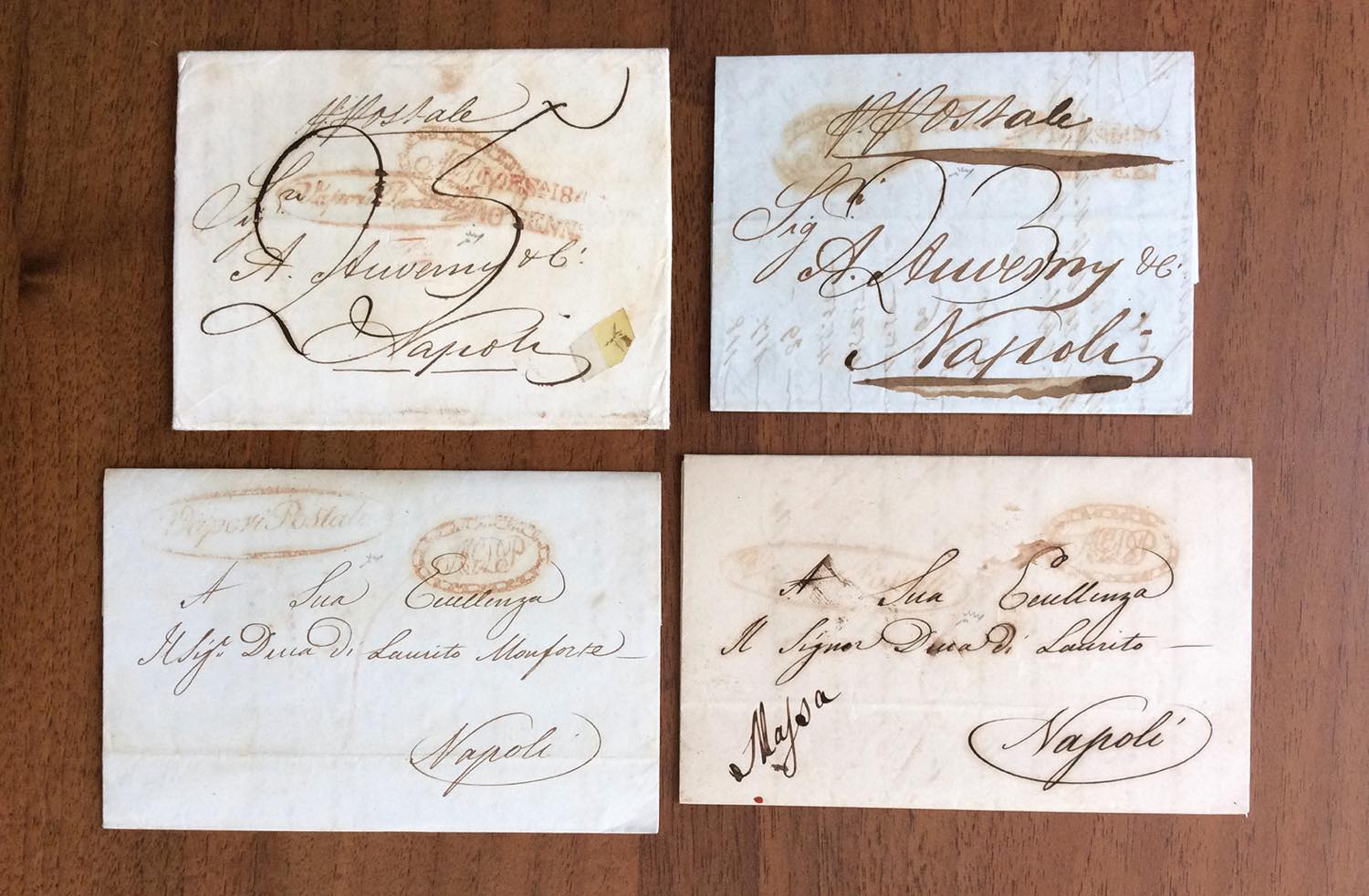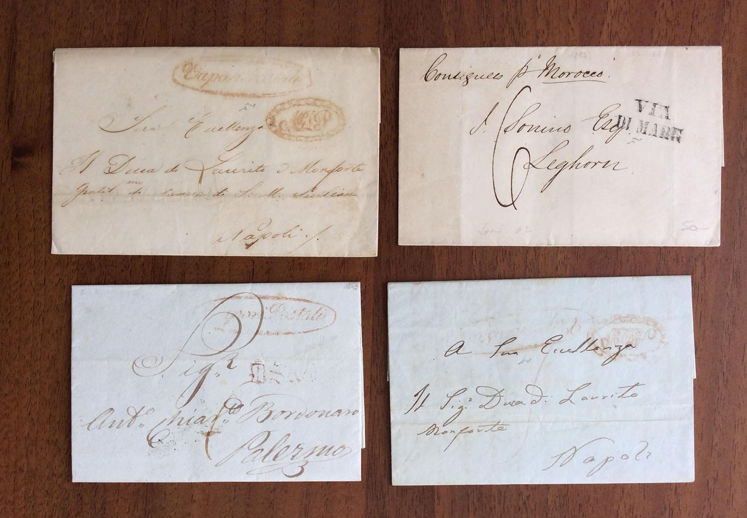 PREFILATELICHE VIE DI MARE 1830/1860 - Bell'insieme di 40 lettere via di mare prefilateliche o non affrancate. Diverse ripetizioni, ma presenze anche interessanti. Ex coll. Imperato.