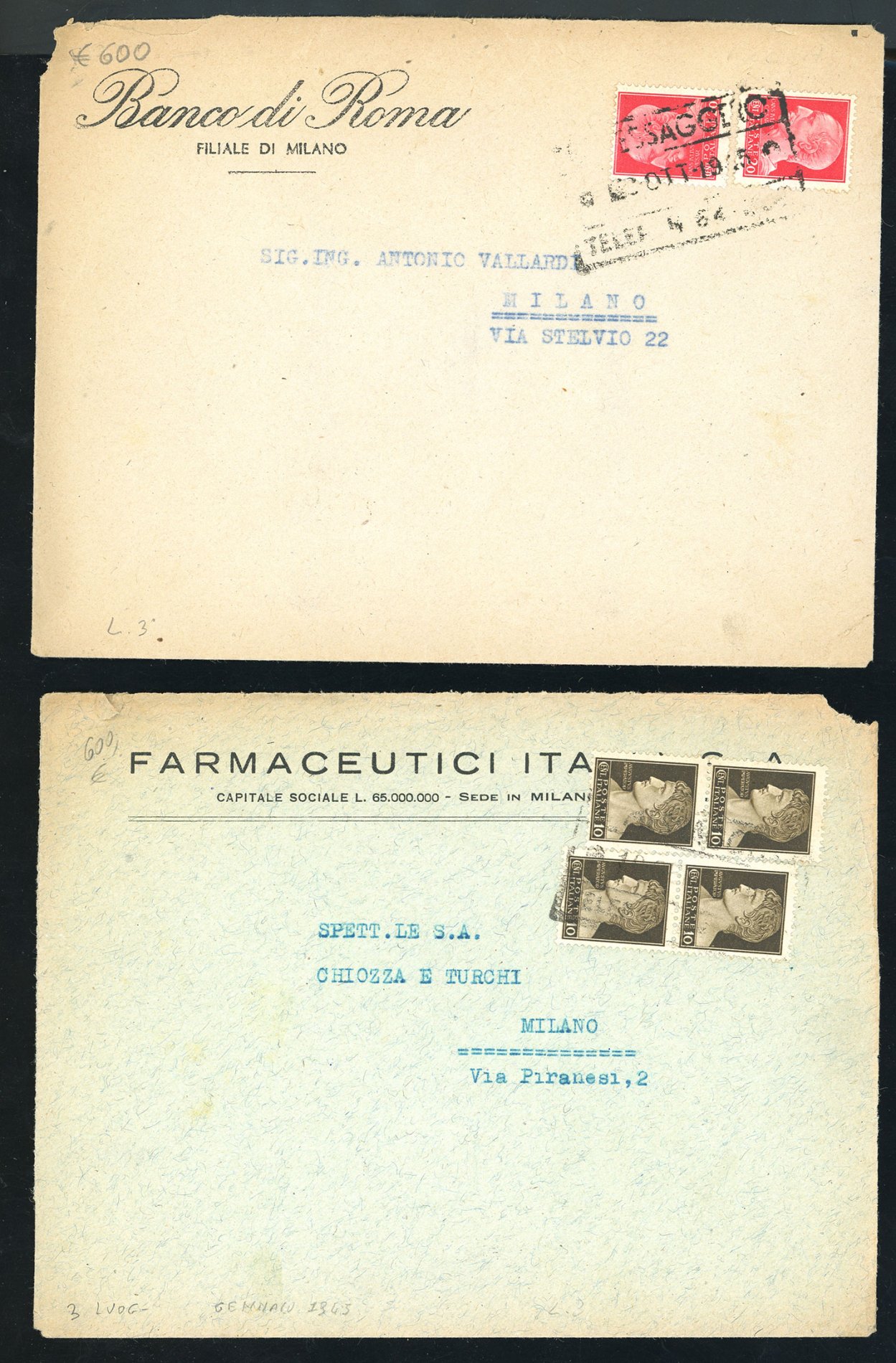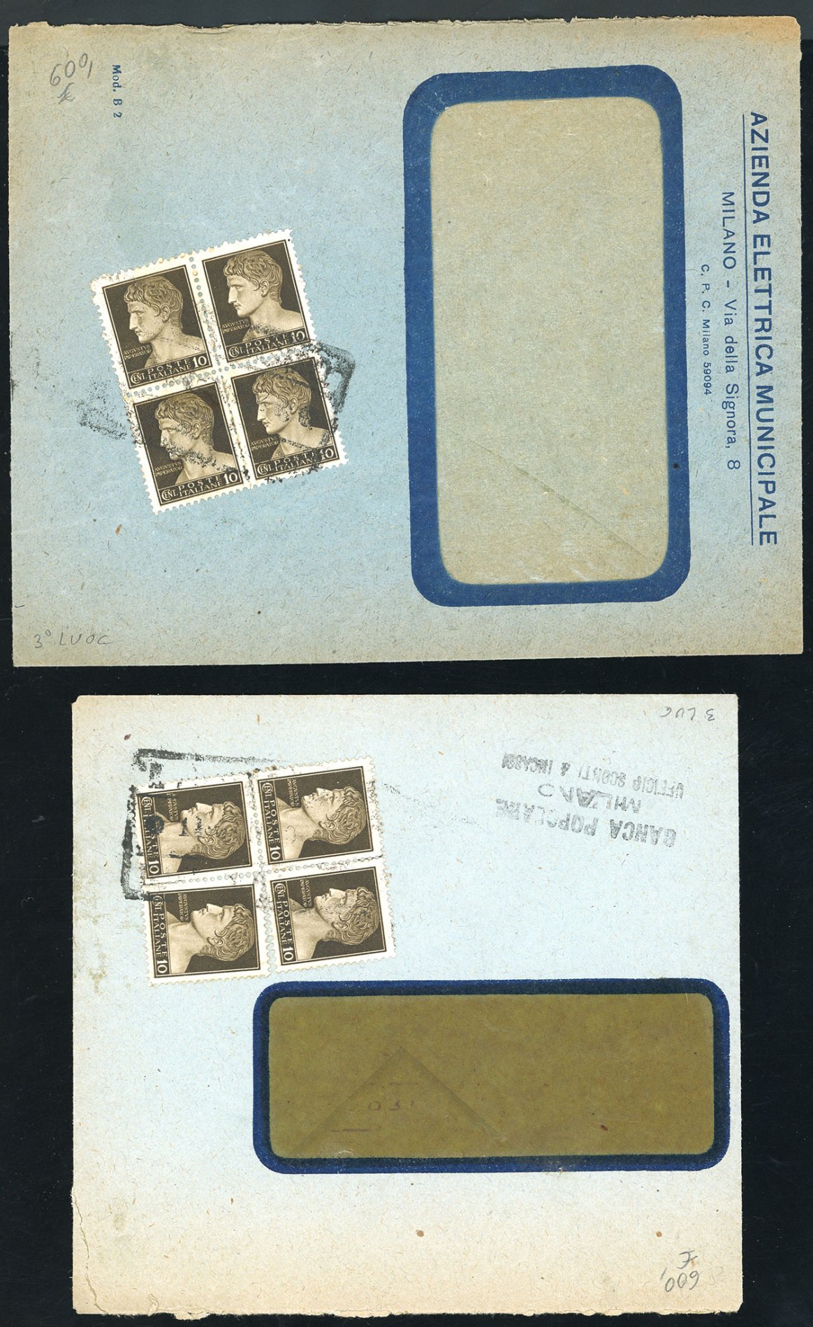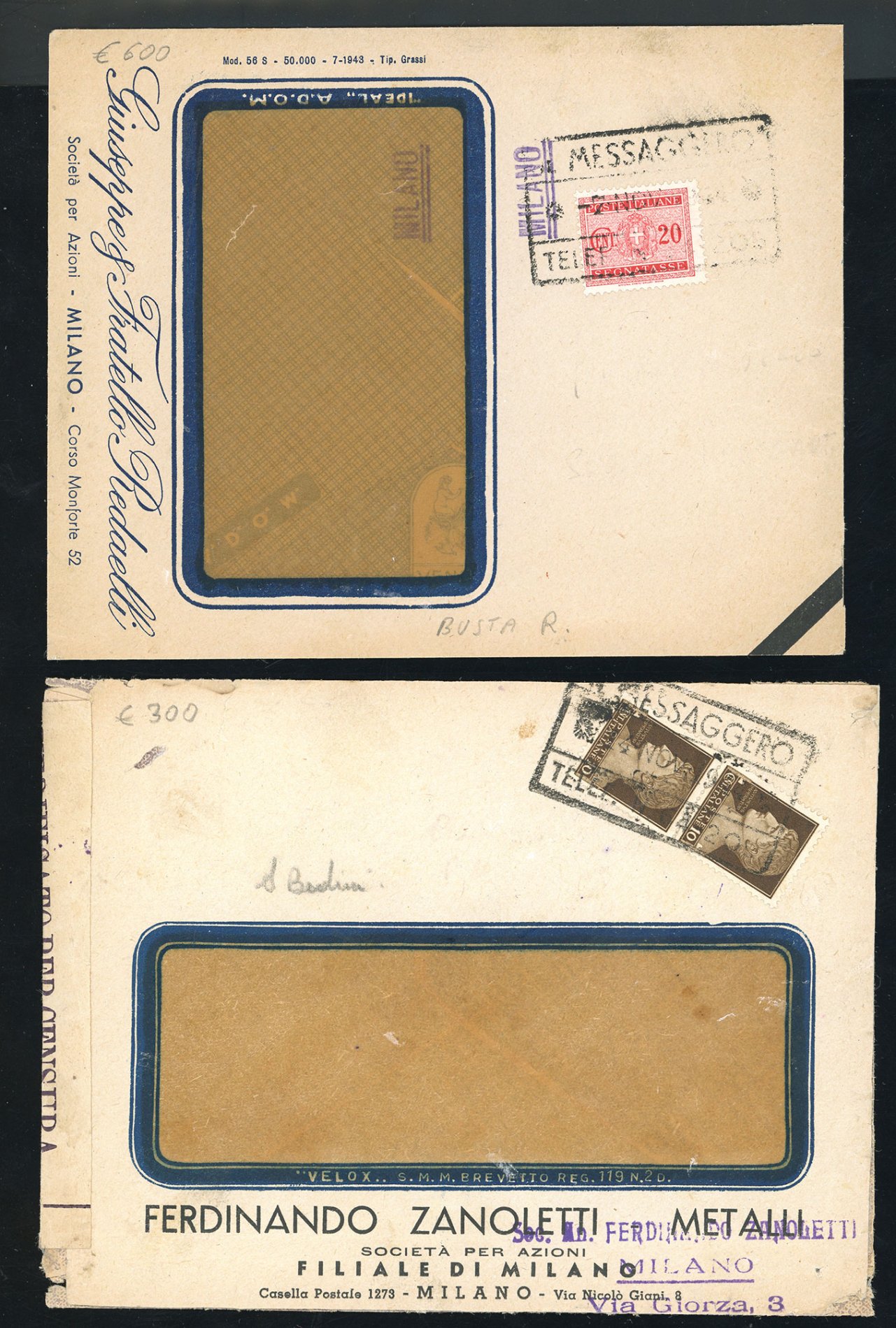 REGNO D'ITALIA/REPUBBLICA SOCIALE ITALIANA 1935/1945 - Bell'insieme di 8 buste viaggiate tramite recapito autorizzato ma affrancate con francobolli ordinari e segnatasse. Molto interessanti e non comuni.