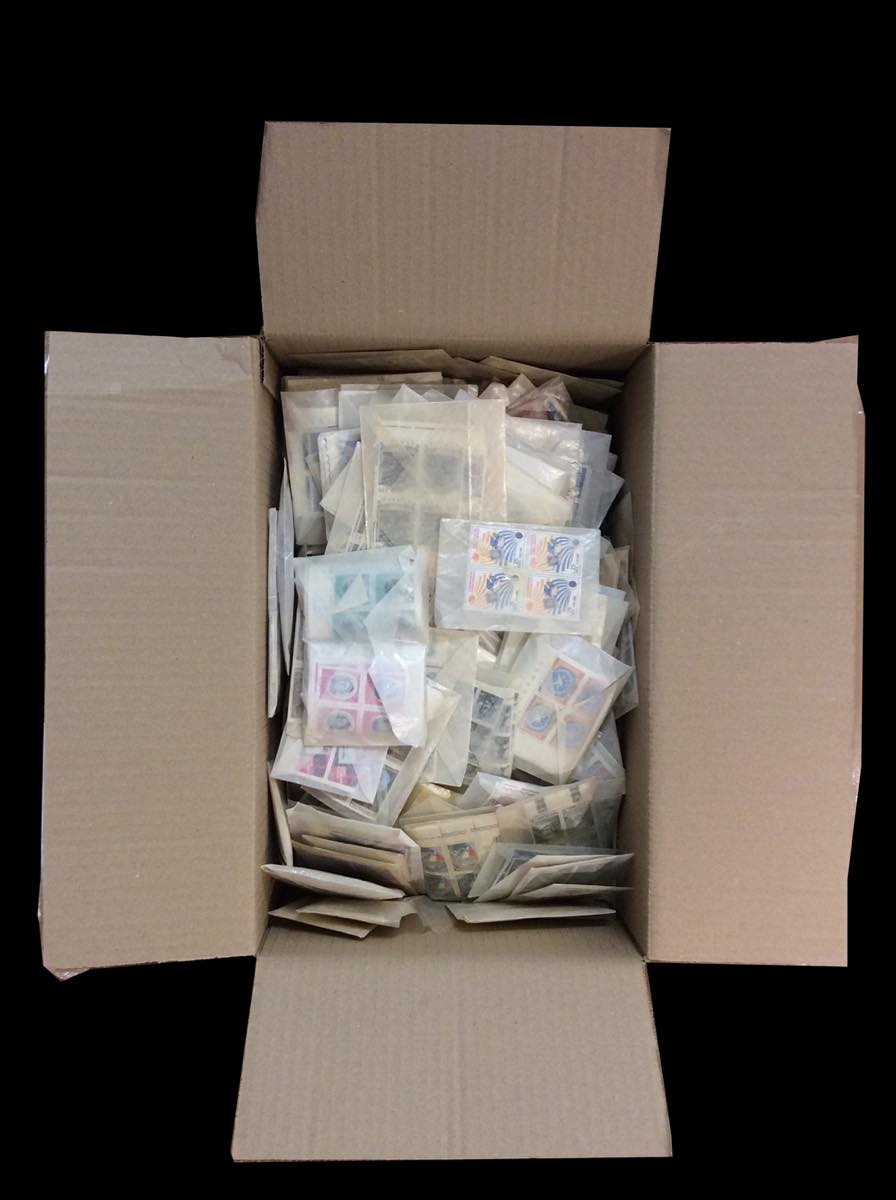 REPUBBLICA ITALIANA 1955/1977 - Accumulazione di quartine del periodo, anche molto ripetute, in una grande scatola.