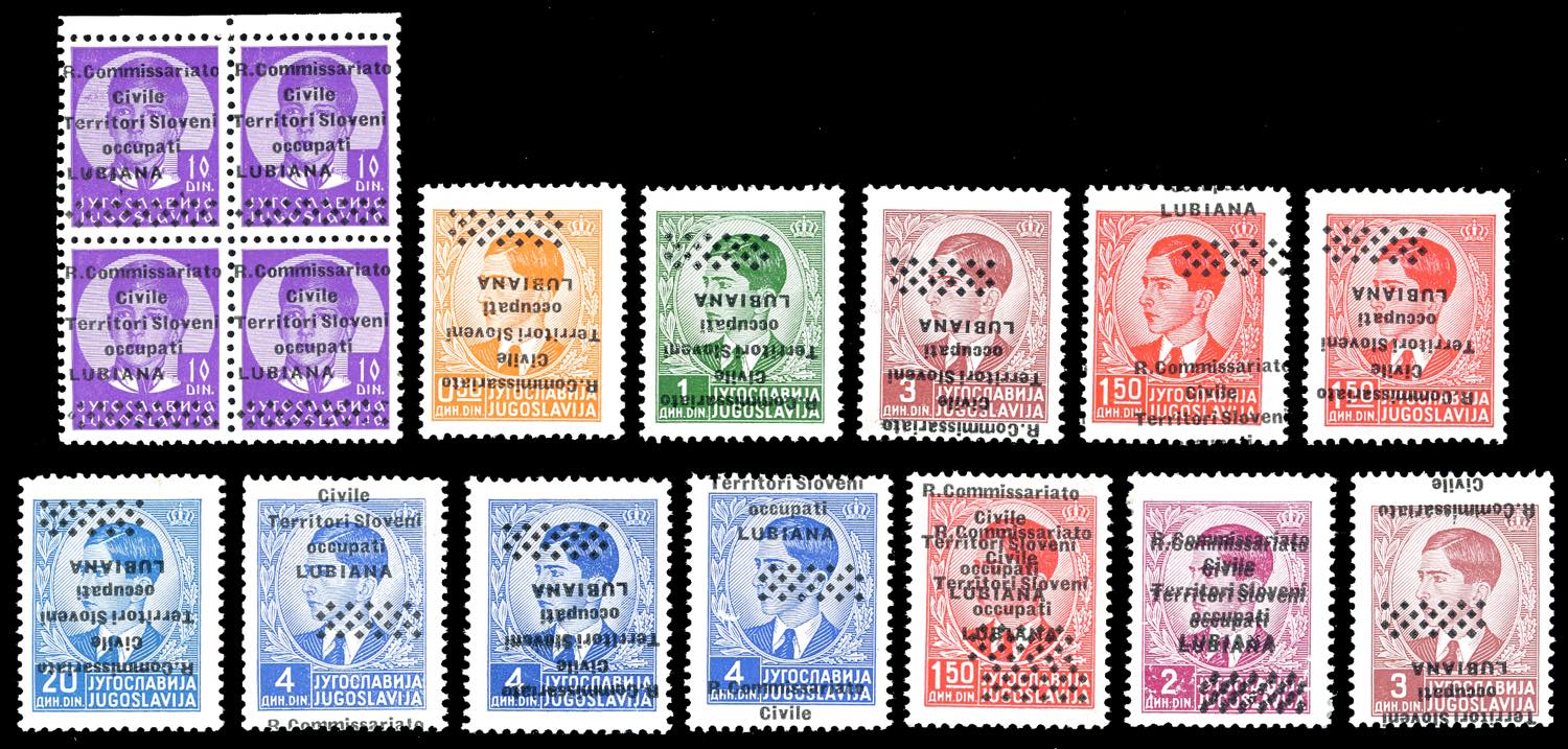LUBIANA 1941 - Bell'insieme di 16 esemplari con evidenti e anche non comuni varietà di soprastampa. Tutti gomma integra, perfetti e originali.