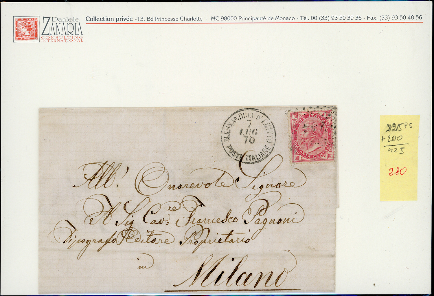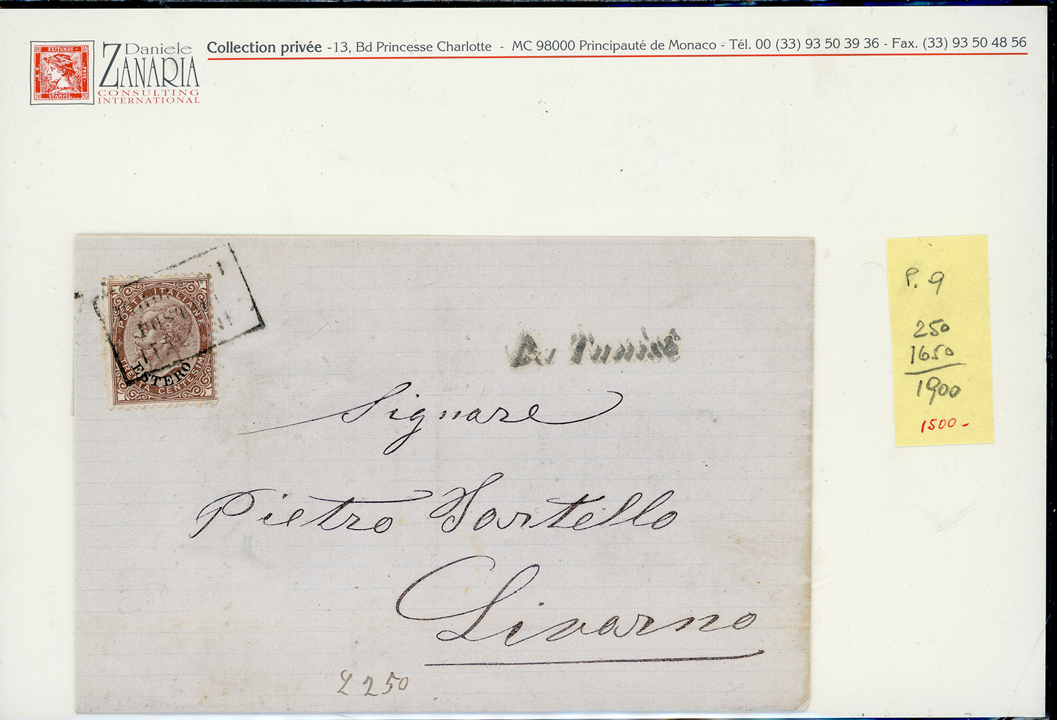 UFFICI ITALIANI ALL'ESTERO 1866/1885 - Bell'insieme di nove lettere affrancate in partenza dagli uffici di Tunisi ed Alessandria d'Egitto, con presenze anche rare, ottima qualità generale. Molto interessante, elevato valore di catalogo. Ottimo anche per dettaglio.