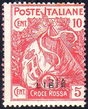 Lotto 1908 - 1915 - 10 + 5 cent. Croce Rossa, doppia soprastampa (13d), ...