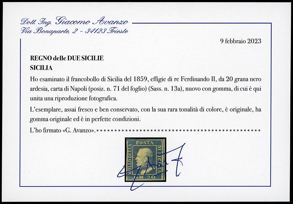 Lotto 472 - 1859 - 20 grana nero ardesia (13a), pos. 71, nuovo, gomma ...