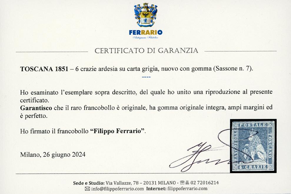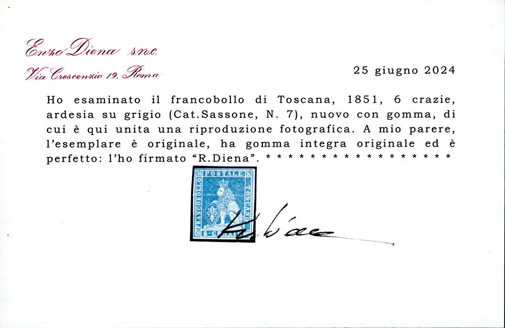 1851 - 6 crazie adesia su carta grigia (7), nuovo, gomma originale integra, perfetto. Molto bello per freschezza e marginatura. Molto raro ... Leggi tutto