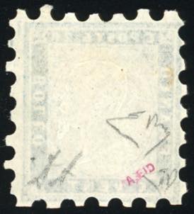 1862 - 20 cent. azzurro, prova di dentellatura 7 1/2 eseguita dalla tipografia Susse (2o), gradazione di colore molto più scura di quella ... Leggi tutto