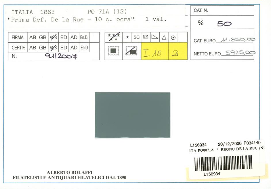 Lotto 581 - 1863 - 10 cent. De La Rue, tiratura di Londra (L17), bordo ...