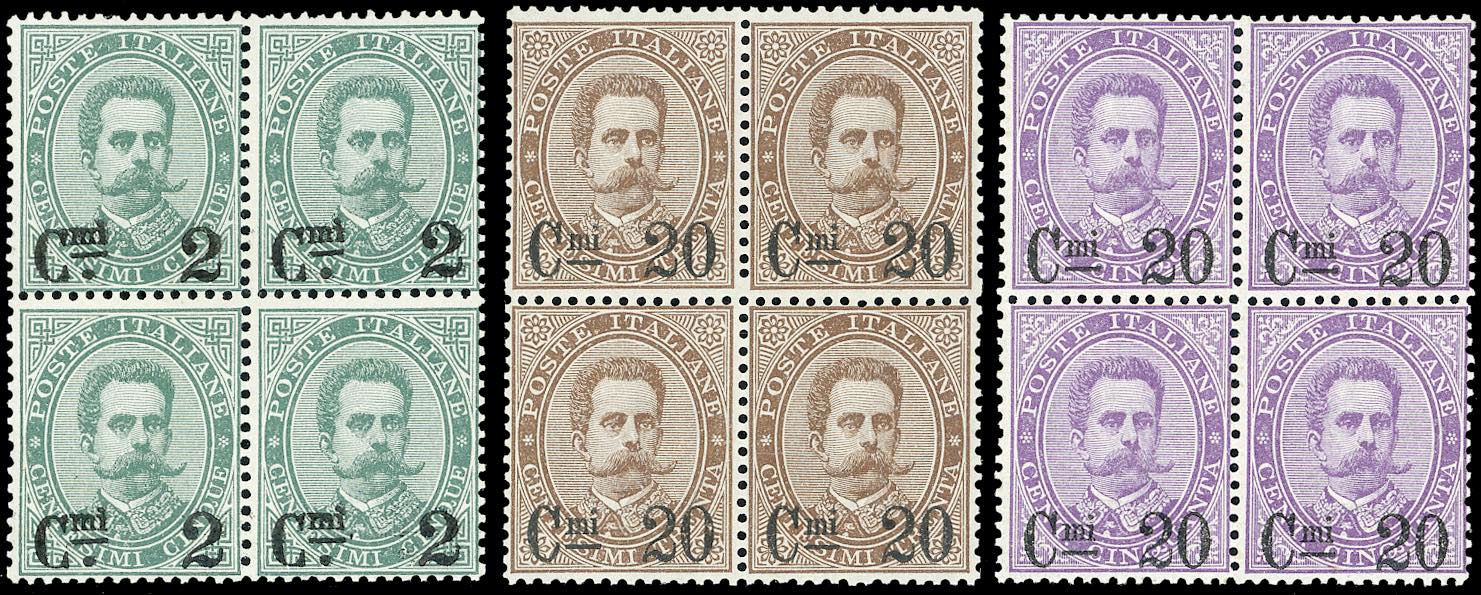 Lotto 648 - 1890/91 - Soprastampati (56/58), blocchi di quattro, buona ...