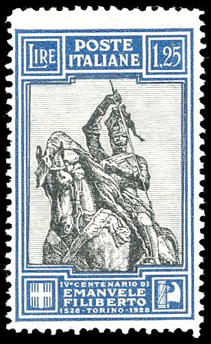 1928 - 1,25 lire Emanuele Filiberto, dent. 13 3/4 (235/I), nuovo, gomma originale integra, perfetto e ben centrato. Cert. Diena.