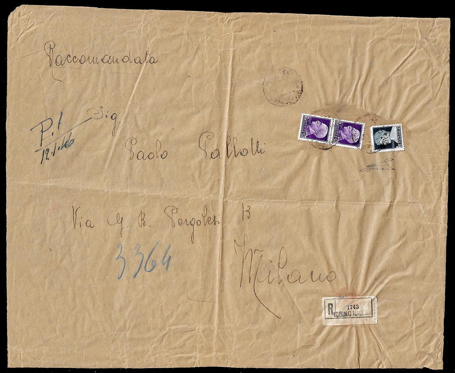 1929 - 50 lire, coppia verticale, 25 lire (260,261), perfetti, su frontespizio di busta, di grande formato, raccomandata da Torino a ... Leggi tutto