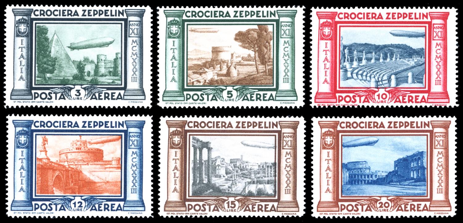 1933 - Zeppelin, serie completa (45/50), nuovi, gomma originale integra, perfetti. Splendidi. Ferrario.